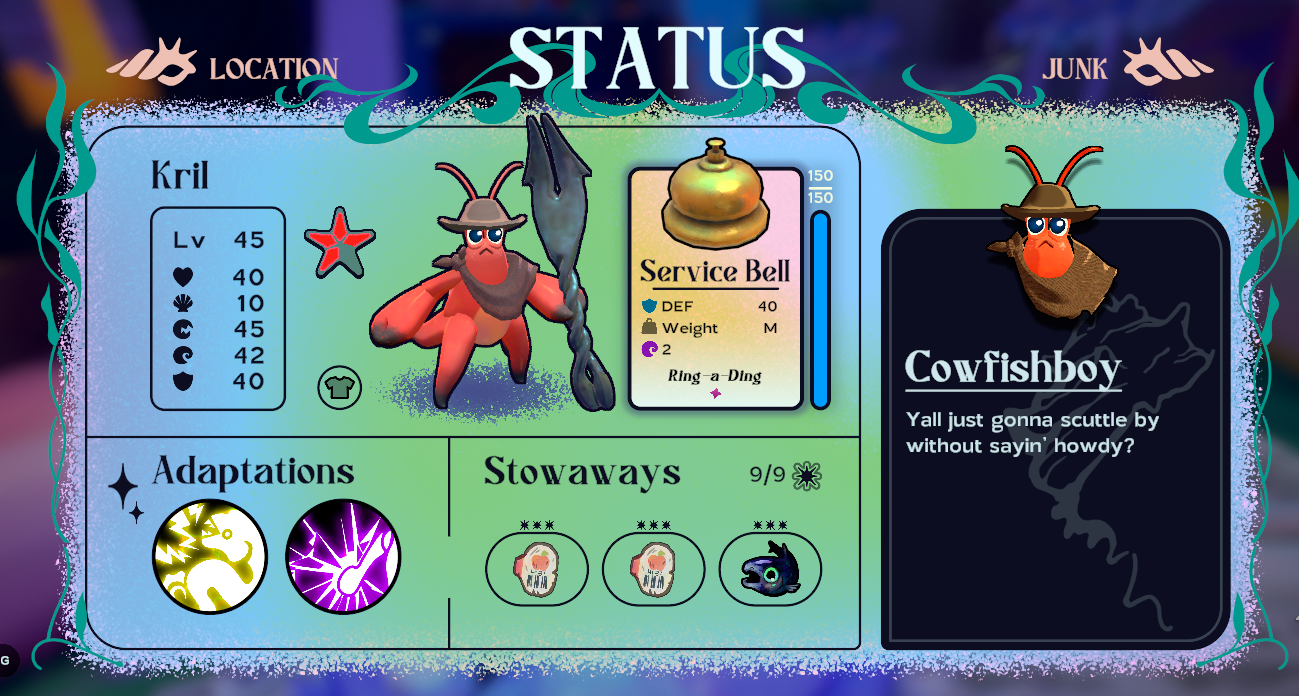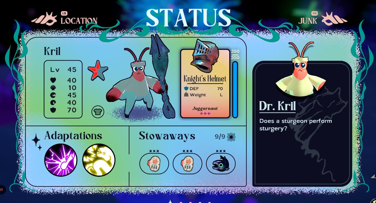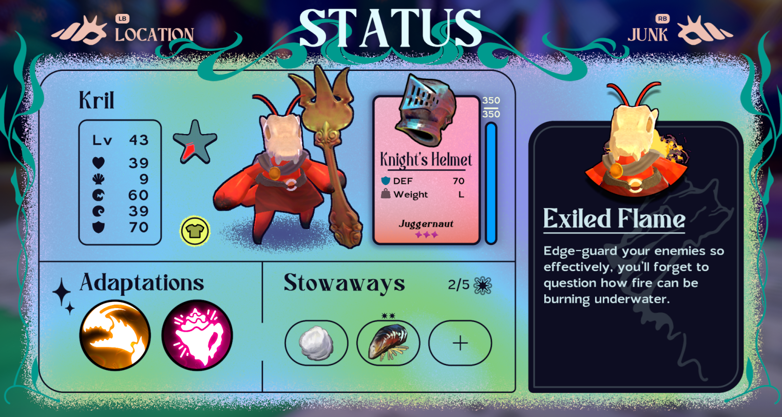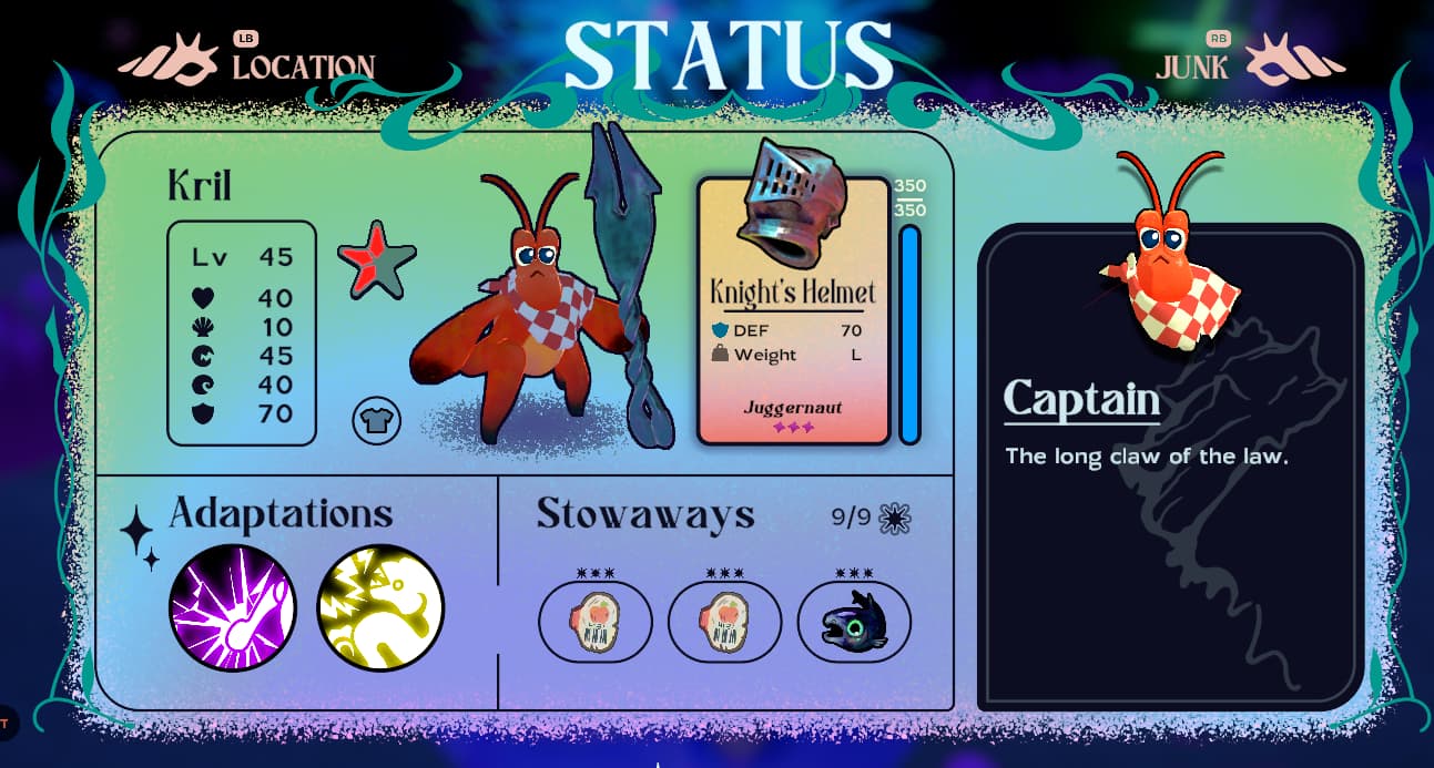 Outfits look like simple cosmetics in Another Crab’s Treasure. They’re purely aesthetic and don’t have any uses or provide additional effects for Kril when equipped.