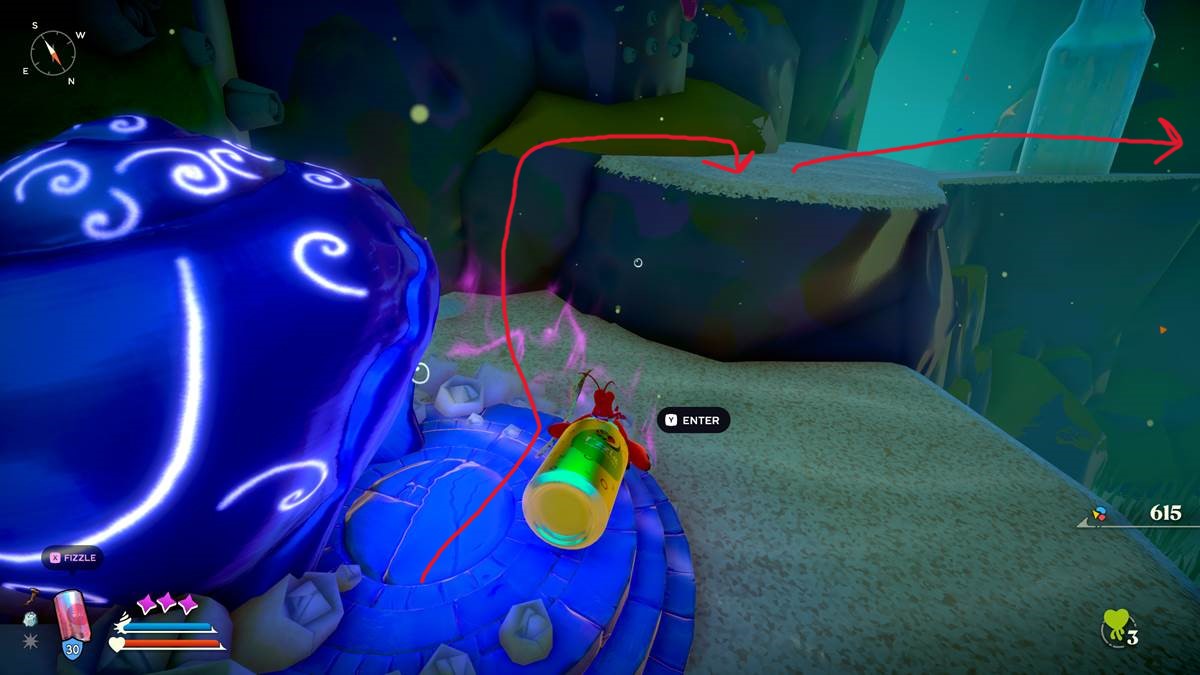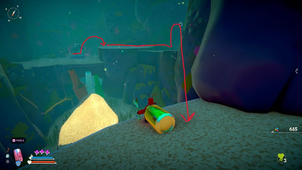 - From the platform you landed on, keep going forward until you see the net you used to escape from the crabs.