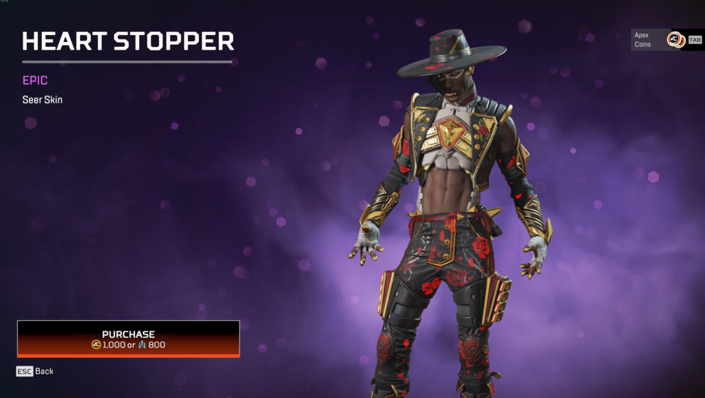 The Heart Stopper skin could reference a couple different animes, but it seems most likely to be modeled after Tuxedo Mask from Sailor Moon. Since it’s an Epic skin, and therefore doesn’t make any major changes to Seer’s character model, the skin doesn’t have Tuxedo Mask’s trademark cape, nor the rose he always carries. Respawn compensated for that last part, however, making the animated portions of the skin a rosy floral pattern.