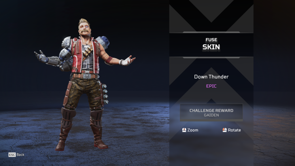 Another easy one to spot, Octane is fashioned much like Monkey D. Luffy from One Piece. The straw hat, the open red coat and scar across his chest, the jorts, it’s all there. In fact, the original version of the skin that was datamined had a completely straw-colored hat, instead of the blue-brimmed one that was added to the game. Maybe it was just too close to the original source material for the creator’s taste? Whatever the case, the visual connections remain very strong.