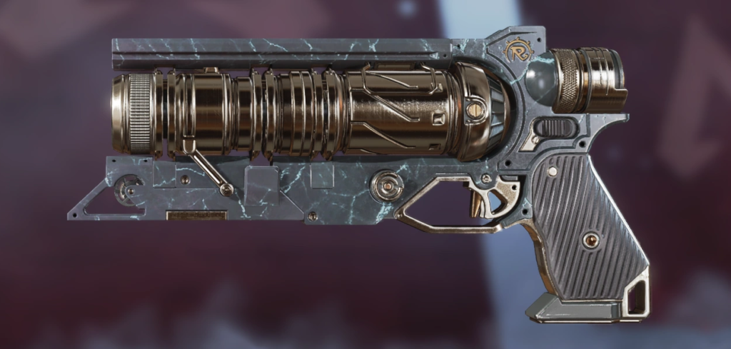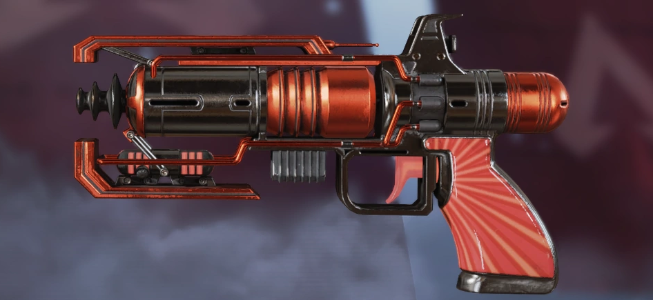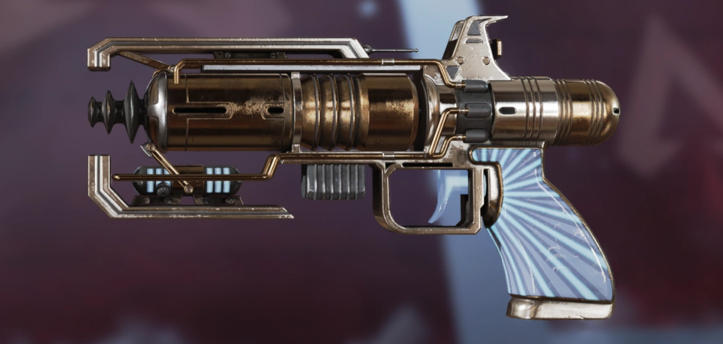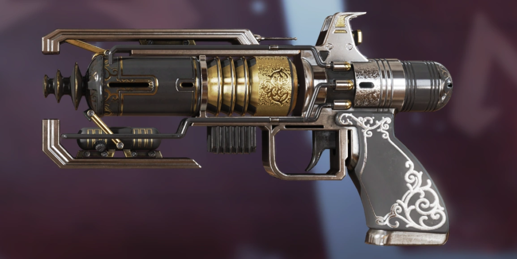 For players who like The Death Ray’s simplicity and its iron sights but want something just a bit flashier, The Dismantler is for them. It trades out The Death Ray’s more drab metal stylings for a bright, burnished red. Parts of the gun barrel also get the gunmetal black treatment, coating this skin in the trademark Apex colors. Players must unlock The Death Ray first to get The Dismantler and then wait for a Store rotation when it becomes available for 10,500 Legend Tokens or 1,800 Apex Coins.