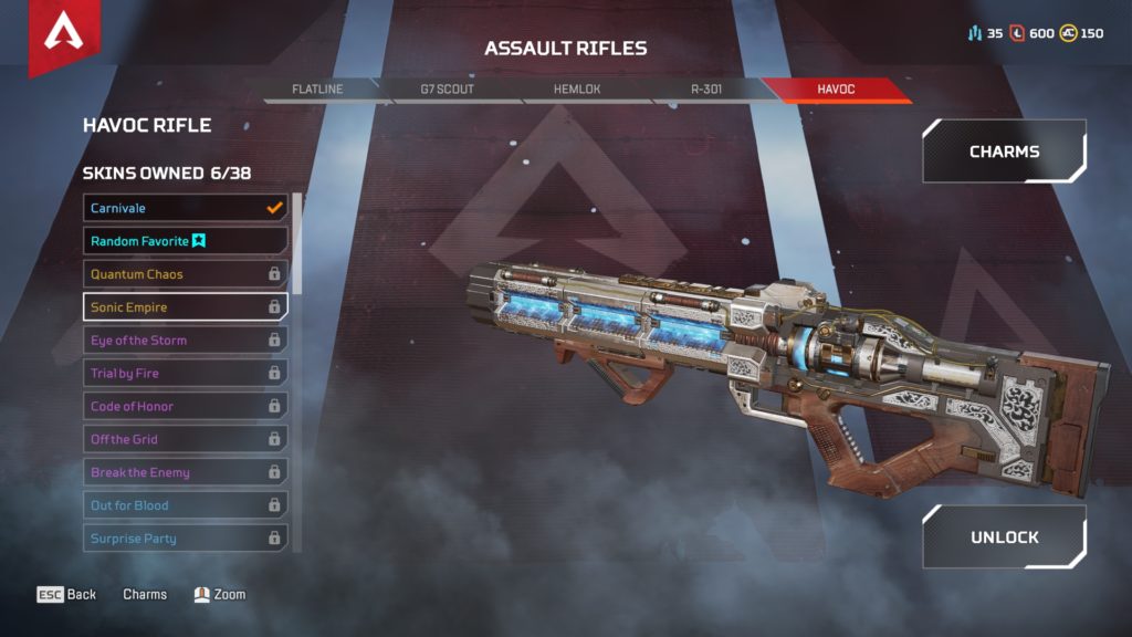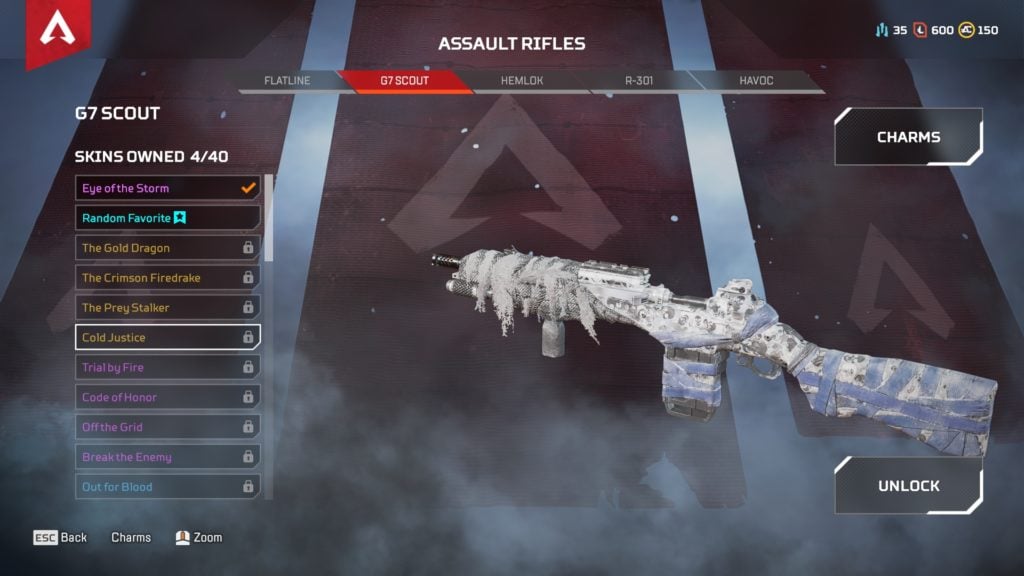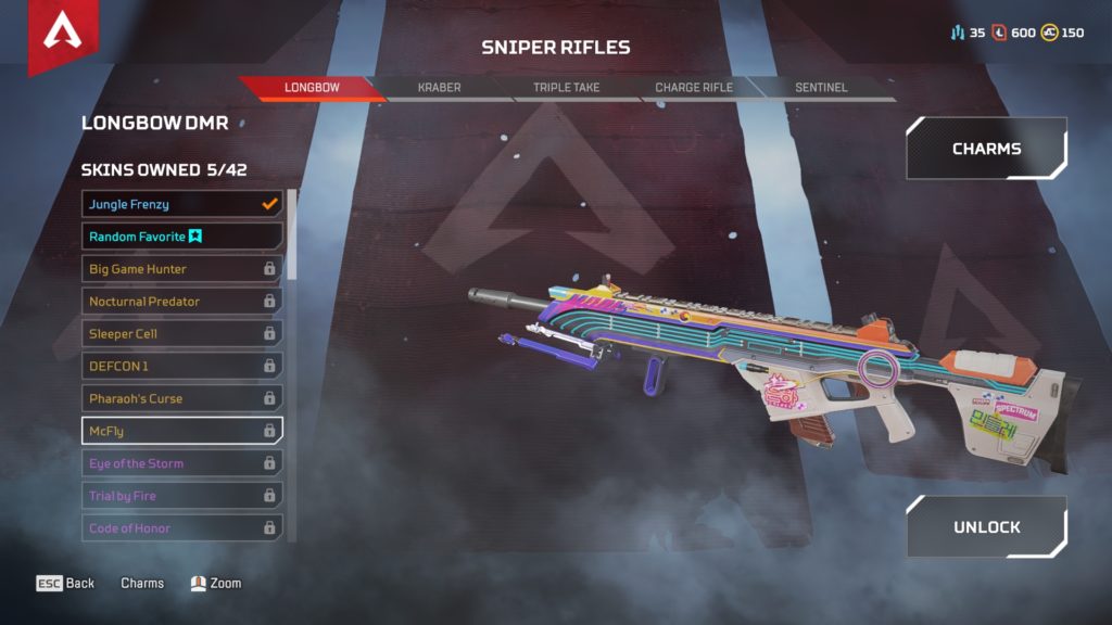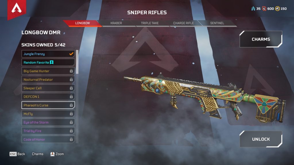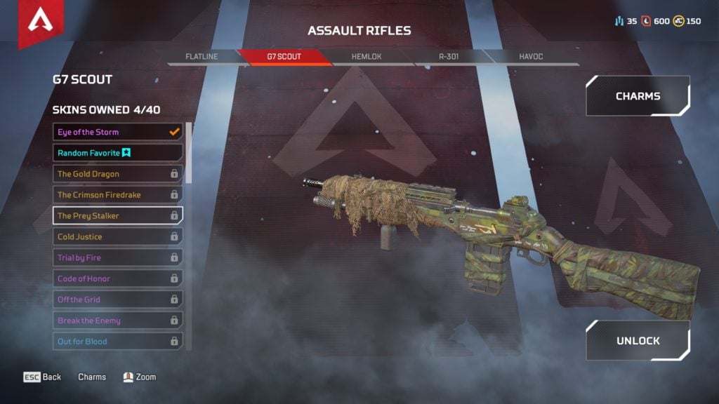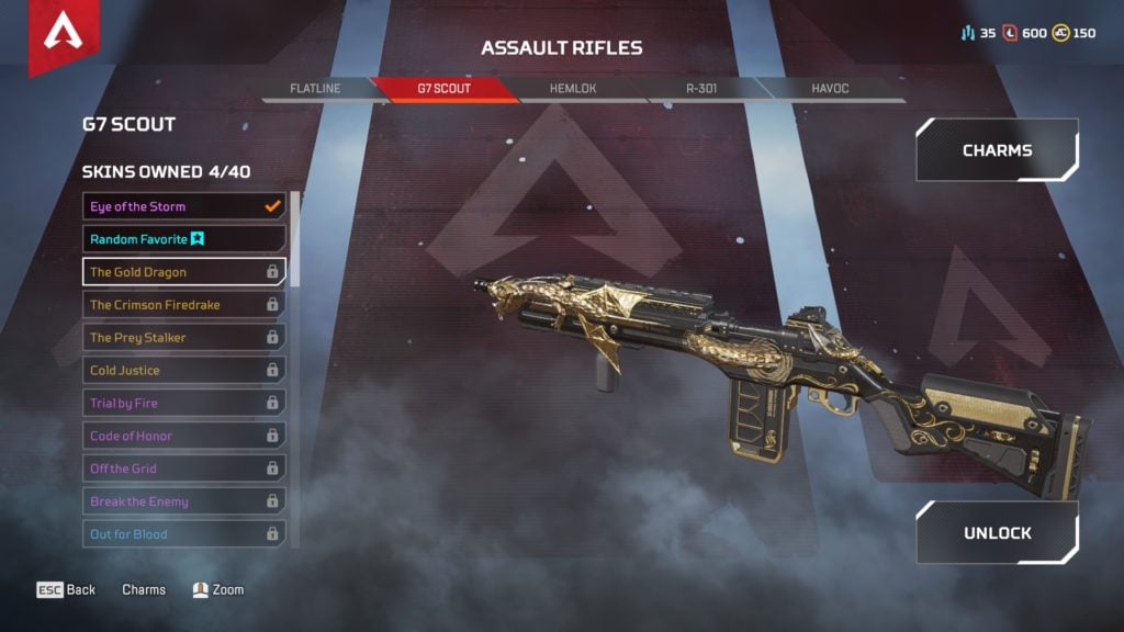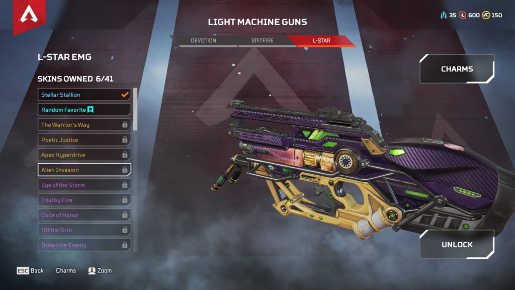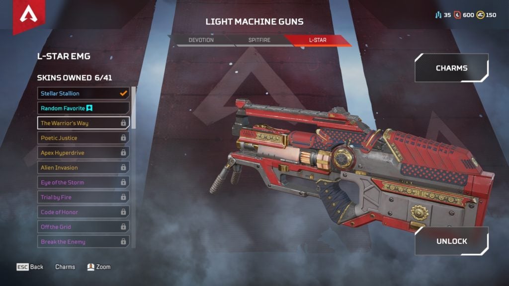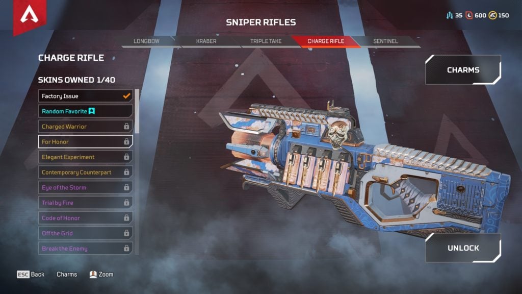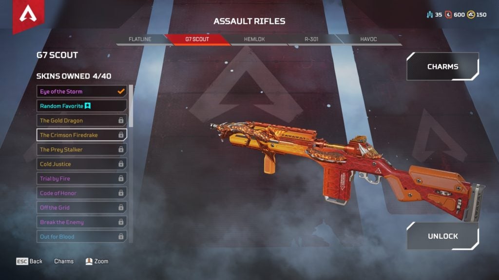 Every weapon has four legendary skins that can be found in loot boxes, bought, crafted, or in season pass rewards. Here are each legendary weapon and its skins in Apex.