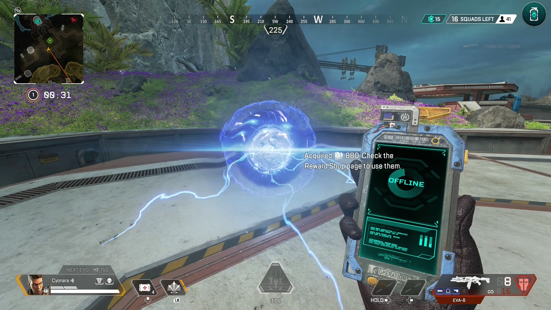 On our first successful hack of one such location, we were given 880 Compute Nodes in total, so the system is quite generous with its handouts. Compute Nodes drops in subsequent matches handed out 875 instead, so it’s important to keep in mind that the amount can vary a bit per instance. The loot tick also happened to contain a gold backpack and an L-STAR—it’s fair to say that looting these spots with a bit of luck on your side might give you an excellent start to the match too.