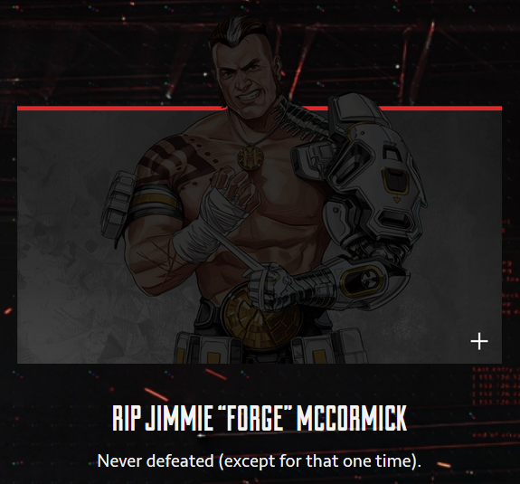 The season four page on EA’s official website was updated with a memorial page for the legend shortly after the teaser aired. His picture was grayed out and the page displayed the words “RIP Jimmie ‘Forge’ McCormick” below the character. The text on the website was also updated to reflect the arrival of a “mysterious legend.”