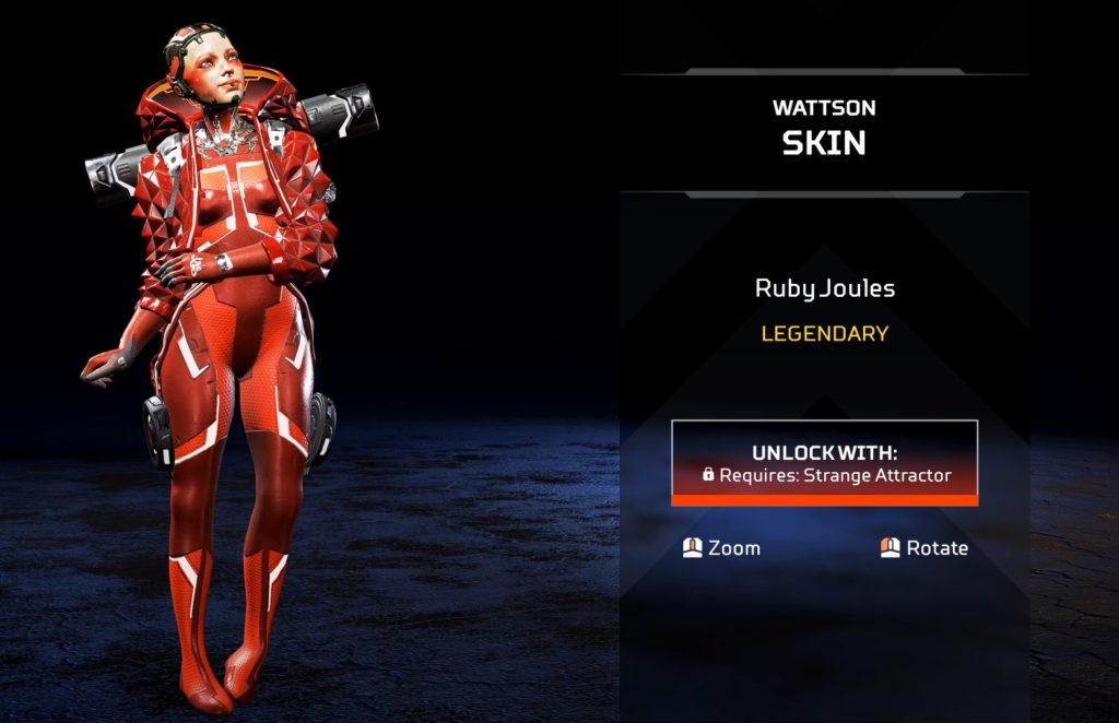 In terms of Wattson’s base recolors, it doesn’t get much rarer than Ruby Joules. This recolor of Strange Attractor paints the character in an entirely red color scheme. The face plate on this skin is much more human than the base legendaries it’s based on, which may appeal to some Wattson fans. You are required to already own the Strange Attractor skin to purchase Ruby Joules, if you can find it. Ruby Joules hasn’t returned to the store since it was first release in May 2020.