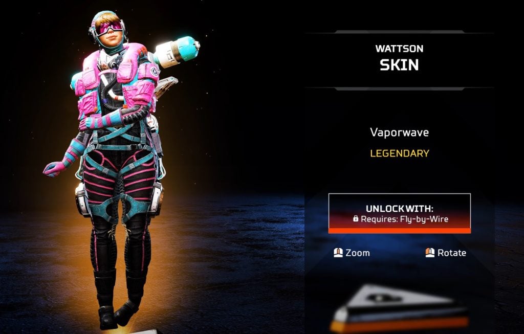 The final variant of Wattson’s pilot build brings a familiar color pallet from the iconic Vaporwave visual art style. The light pinks and blues make this skin a very unique stylistic choice in a game dominated by dark serious tones. While this skin had a lengthy lay-off from the store since its release in 2020, it’s since made two appearances in 2022, first in February, and then in June.