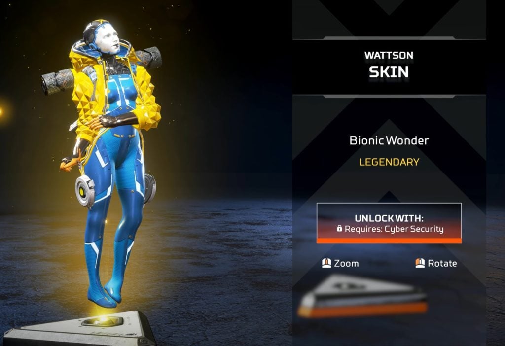 One of the most popular skins available for Wattson, this skin has the perfect color combination. The yellow jacket could not look better above her blue armor plating. While it may just appear a recolor of the previously mentioned skins, this is the only skin for Wattson that uses this unique mannequin-esque face plating. If you’re looking for a skin that you can show off to other players, this is a perfect choice. This recolor was last seen available in the store almost a full year ago.
