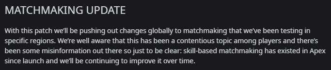 A hot topic within the Apex community was the debate behind Respawn’s decision to include skill-based matchmaking despite having a dedicated Ranked mode. The patch notes for season four confirmed that SBMM has been in Apex since the game was launched in 2019.