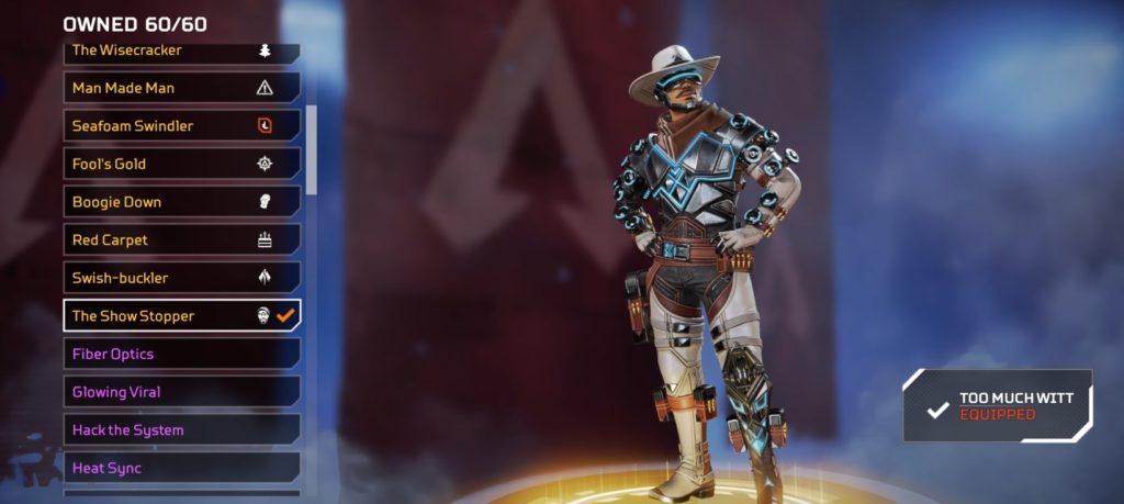 The legendary skin that came with the Mirage edition of Apex Legends was anything but subtle, which is just the way Mirage likes it. Give him a cowboy hat. Give him a visor like Cyclops or LeVar Burton in Star Trek. Give him chaps. Put them on Mirage and you’ve got the space cowboy of your dreams.