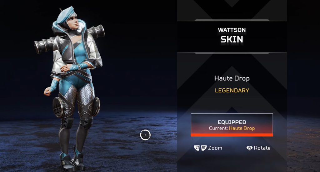 Leaning into the French-ness of the character, Haute Drop presents the most adult version of Wattson to date, with a beret and matching puffy jacket alongside dark eye shadow. The teal and silver colorway alongside a geometric pattern also fit the aesthetic of Olympus nicely. The Haute Drop skin gave her just enough edge to warrant a place on this list.