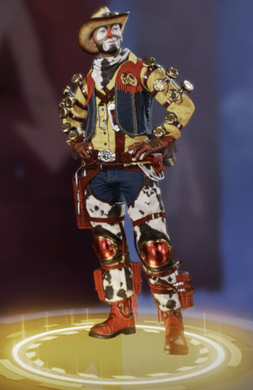Mirage is often the butt of the jokes in Apex, and there are very few costumes that depict his class-clown persona better than an actual clown. And since Respawn apparently loves to give Mirage that Western edge, might as well make him a rodeo clown.