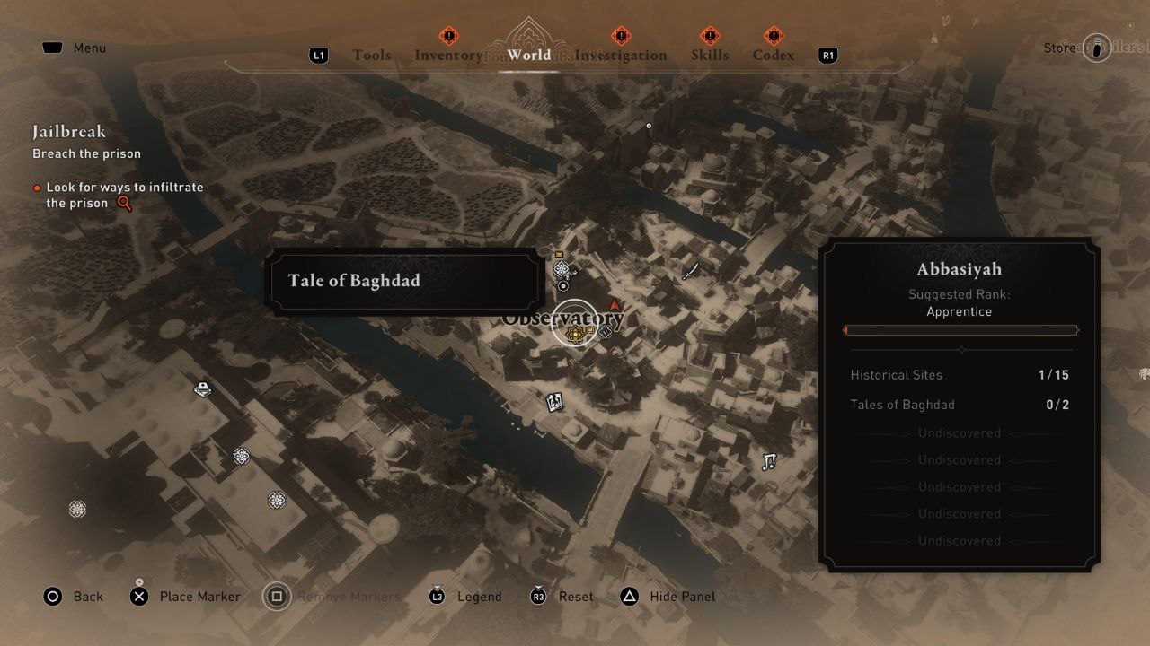 Finding the Observatory Tale of Baghdad starts an Assassin’s Creed Mirage side quest called A Life’s Work. In this short mission, you’ll meet a scholar upon arriving at the Observatory in the Abbasiyah district who will ask you to save his life’s work.