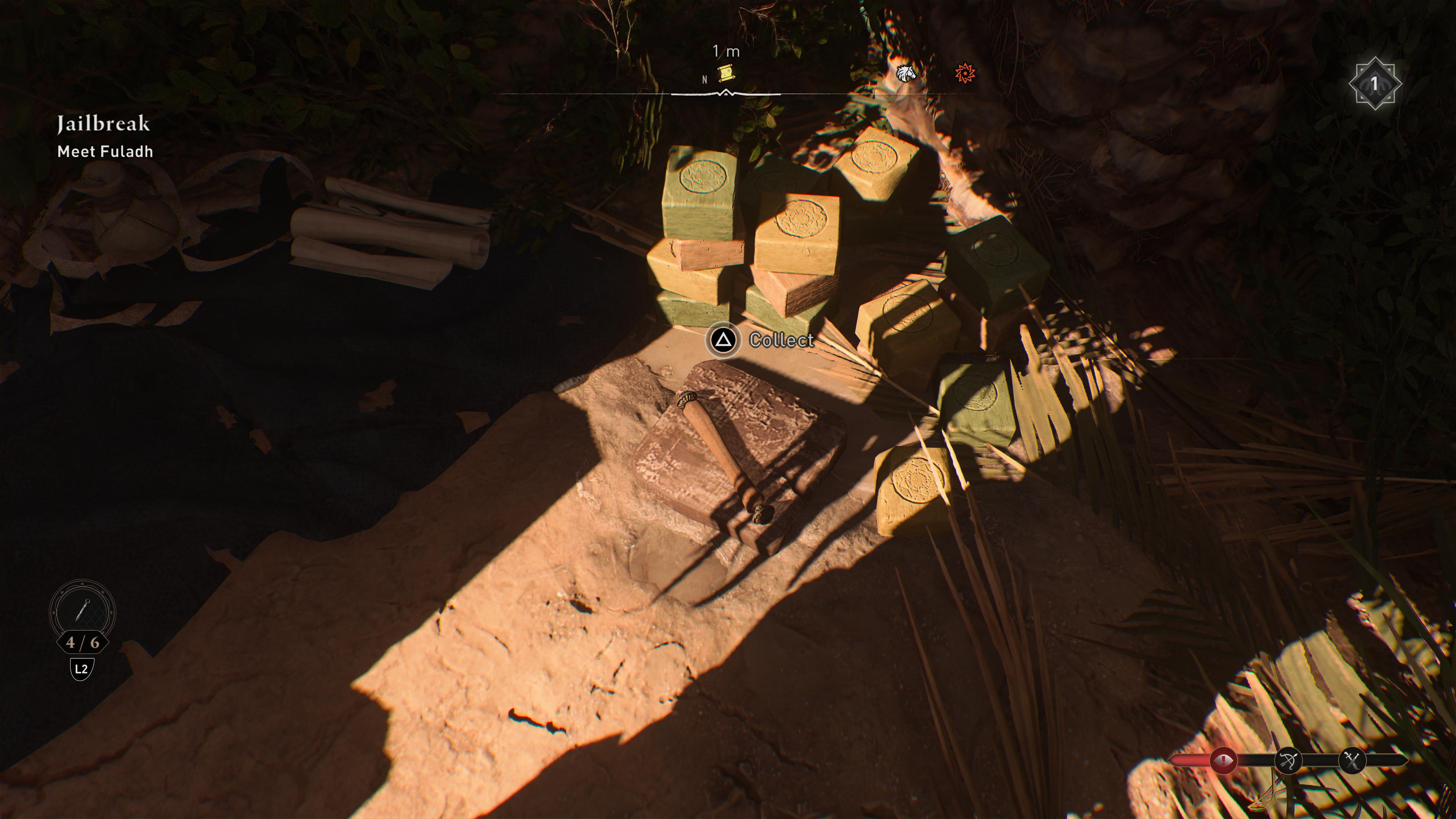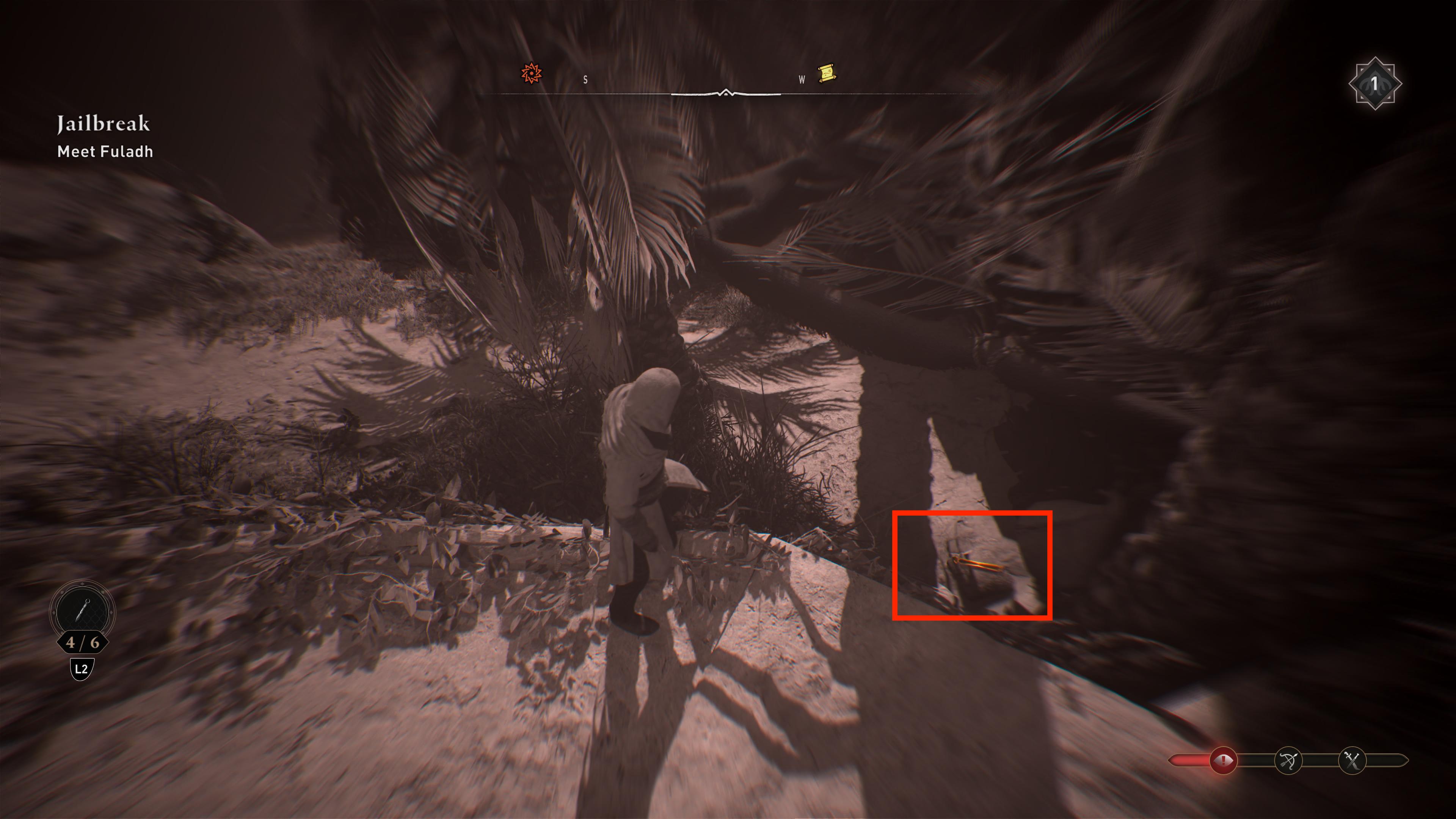 Inside this hut, you’ll find the treasure for the Find What I Stole Enigma, the Black Zanj Uprising outfit dye.