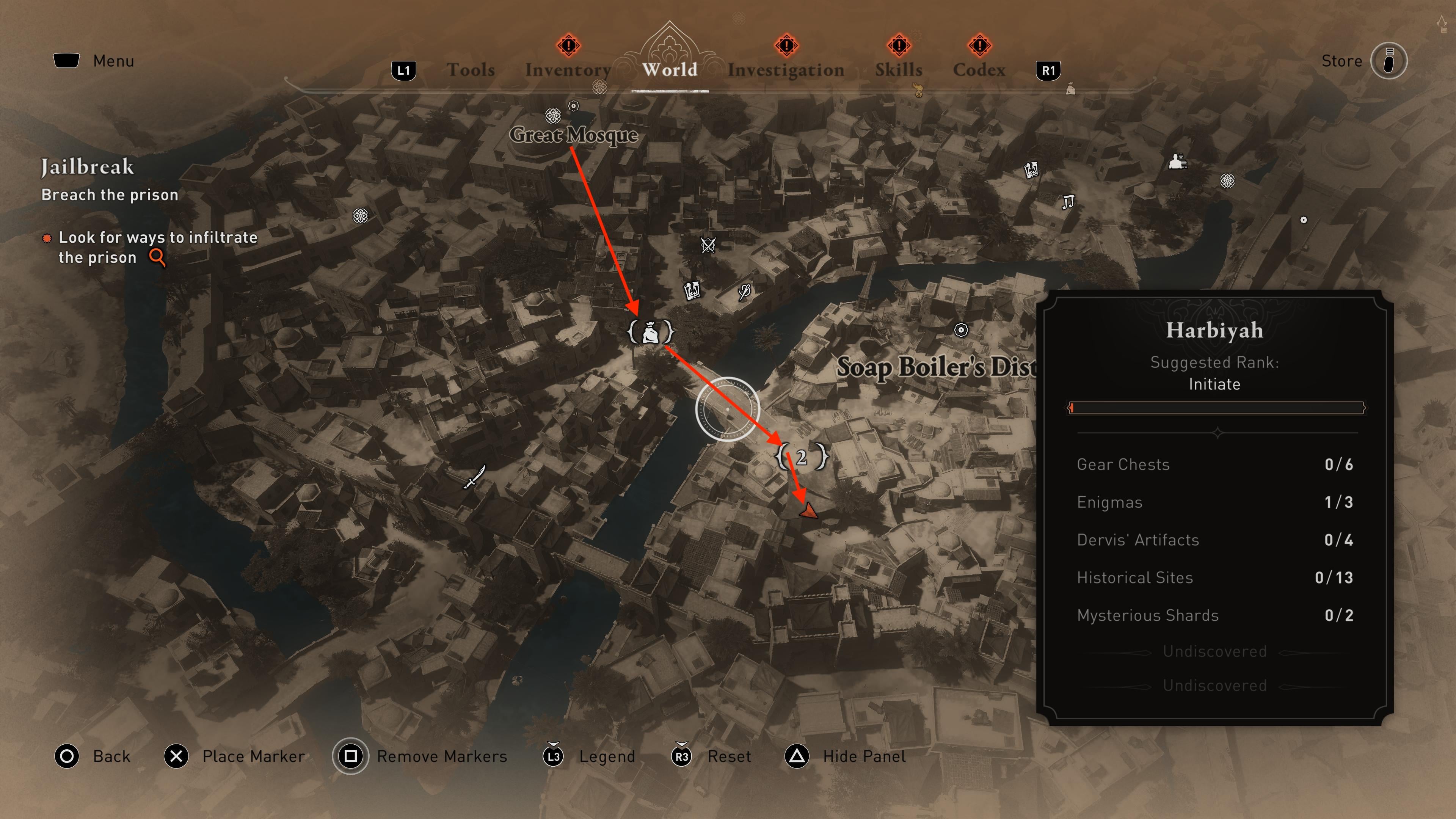 - Fast travel to the Great Mosque viewpoint in Harbiyah, or claim the viewpoint after going to the location on foot.