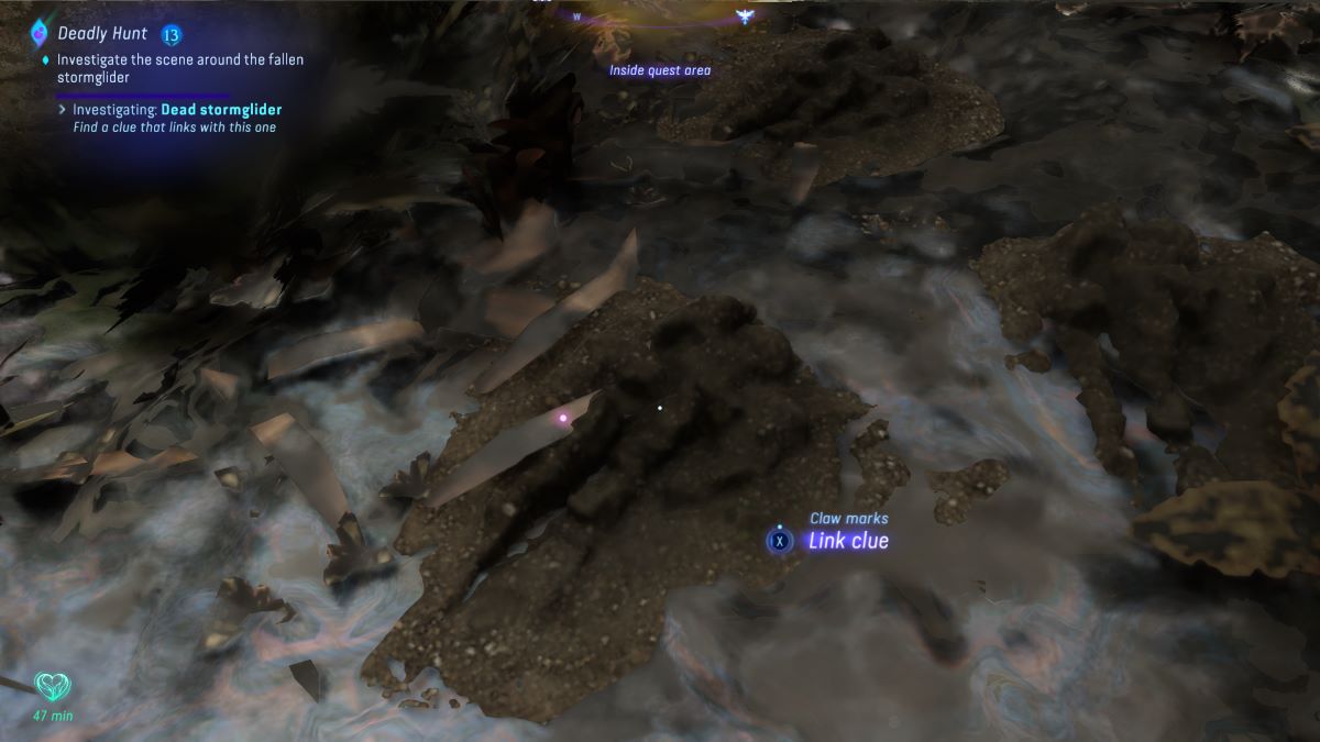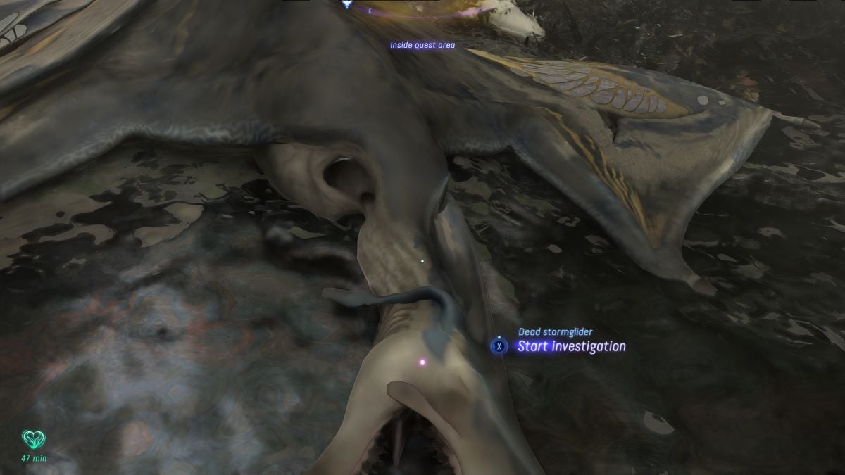 While you can complete this quest in Explorer Mode, I highly recommend using Guided Mode to see where your first objective is. This is because the only bit of guidance you receive from the Quest Log is that the Na’vi Gatherer “saw the Stormglider fly over the waterfalls and into the Thorny Wilds.” In other words, all you know is that it’s somewhere within an absolutely massive radius. Save yourself the headache and turn or Guided Mode for a hot second—otherwise, it’s just guesswork to find where the Stormglider finally went down.