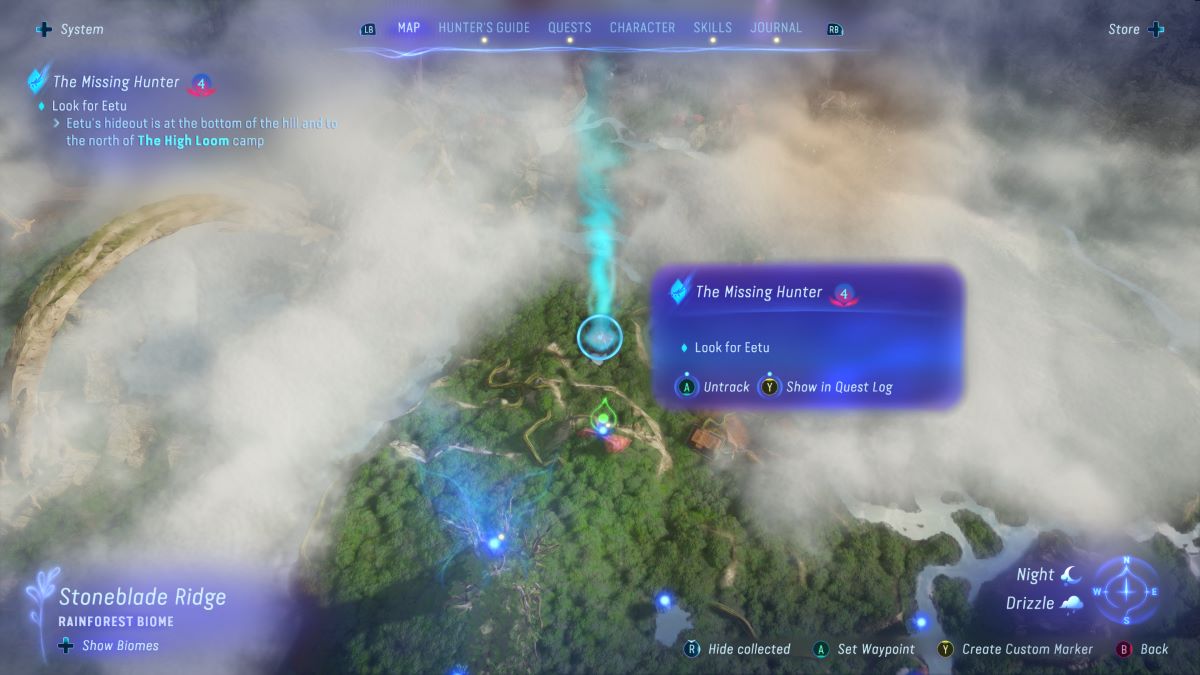 Being that it is a main quest in Avatar: Frontiers of Pandora, you do not have to take any special steps to begin The Missing Hunter—Etuwa will automatically assign the quest to you when you complete Ewya’s Blessing. There are three stages to The Missing Hunter: