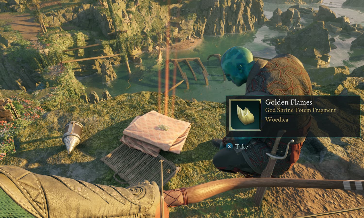 Next up, we have the Golden Flames. For this Totem Fragment, you’ll have to travel south to Castol’s Folly. How you approach the island is entirely up to you, but I crossed the water near the eastern side of the island, which led me closer to the fragment’s location, as shown on the map above.