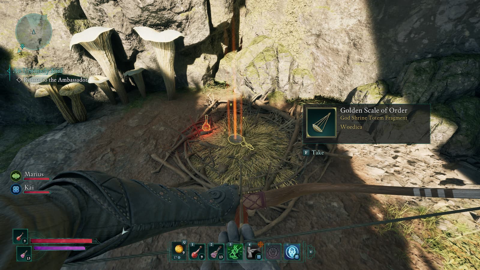Before you can place the fragments onto the Totem of Rightful Rulership at your party camp, you have to first acquire the Totem Base, the Scales of the Oathbinder.