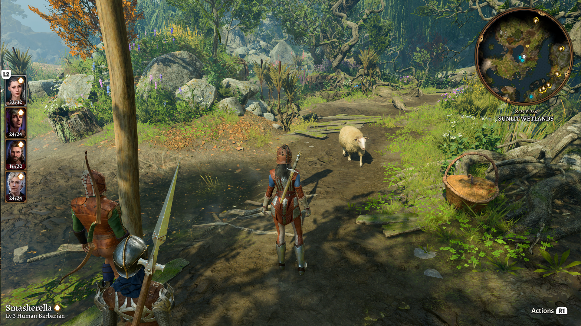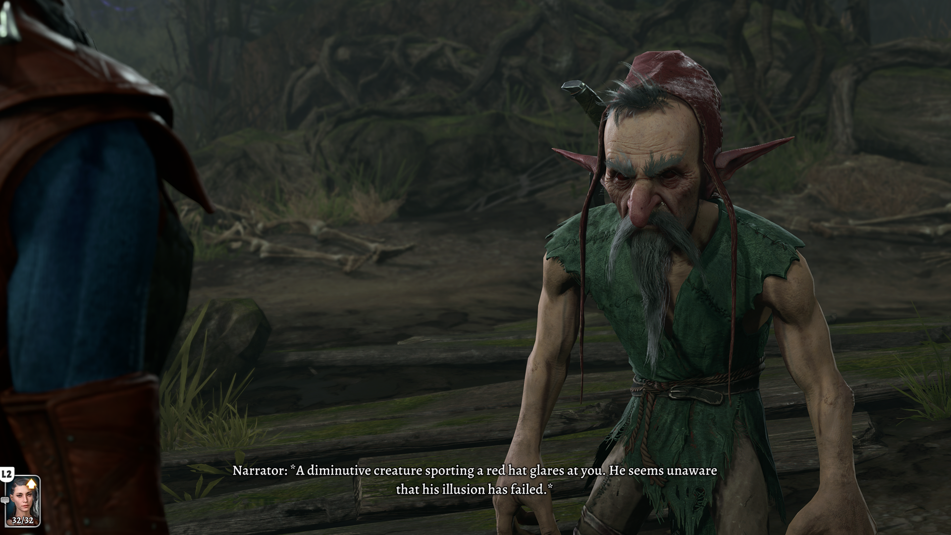 If you talk to the sheep, they, and the entire swamp around you, will morph and change into how things really look. Suddenly you’re standing in the middle of a putrid bog talking to a murderous gnome.