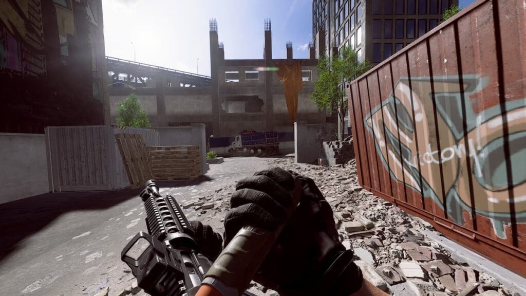 - Once you’re just around the corner from the enemy (use minimap or audio to locate them), use the Adrenaline Injector.
