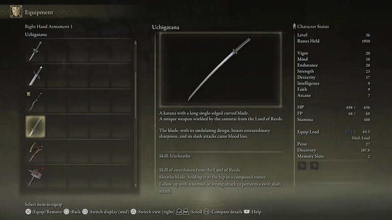 Being the starter weapon of the Samurai class, most players would not think much about this weapon, but the Uchigatana maintains its utility throughout the Dark Souls games into Elden Ring. It is widely considered the best starter weapon with it being able to scale primarily off both Strength and Dexterity. Like a katana, it also has a natural Blood Loss build up and since it is a non-Legendary weapon, it is incredibly flexible by letting players use their chosen Ash of War on it.