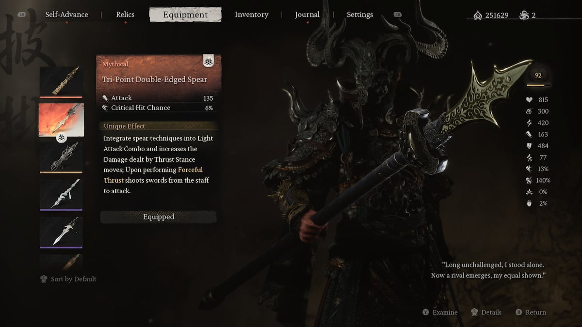 Taking down Erlang Shen again grants you two big rewards: the Tri-Point Double-Edged Spear and the Azure Dome transformation. This is the end of the questline, as far as rewards go, but you can watch a new cutscene if you take down the game’s final boss once more.