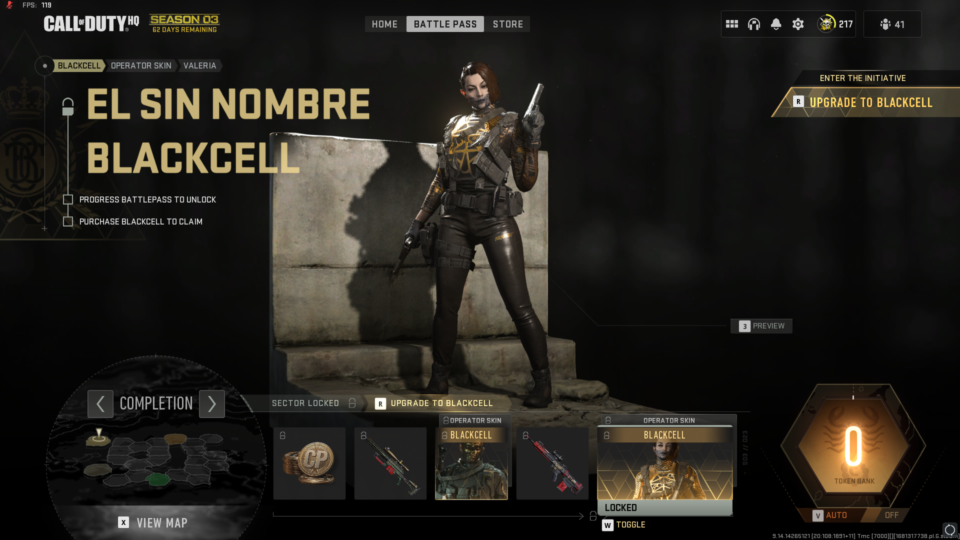 The BlackCell skins are variants of the 12 cosmetics available in the season three battle pass. Players who have the regular season pass will unlock the base version of that skin, but the BlackCell line of cosmetics brings players a stylish black-and-gold palette and, in some cases, extra visual effects. This list includes the two skins for Alejandro and Valeria (available upon instant purchase), as well as a special variant of the max battle pass skin, Valeria’s El Sin Nombre.