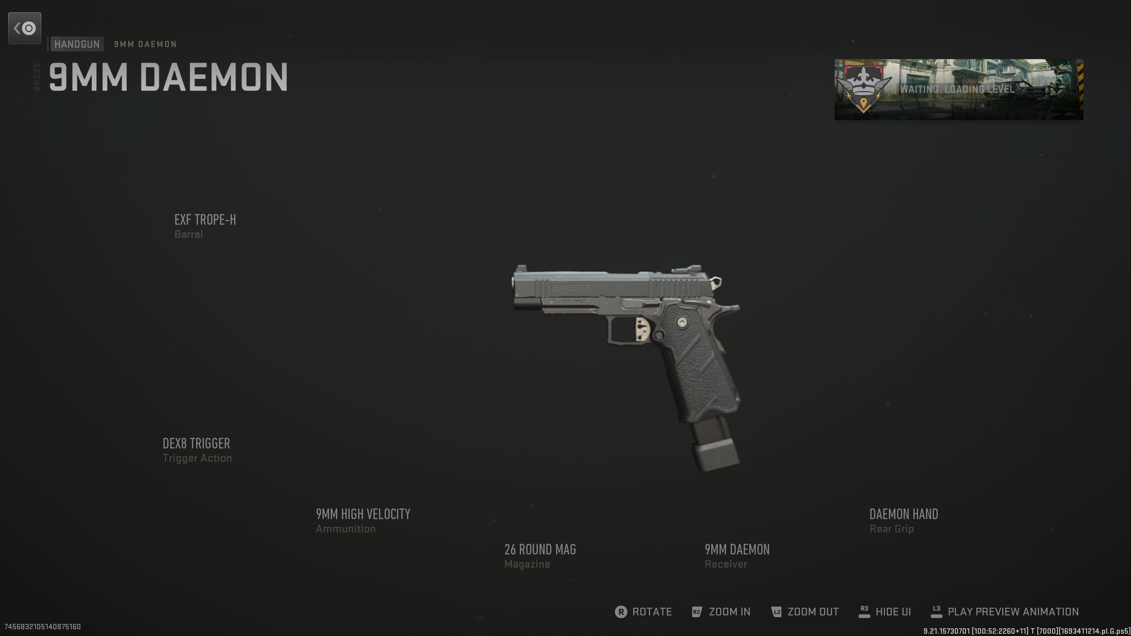 - Rear Grip: Daemon Hand or Akimbo 9mm Daemon