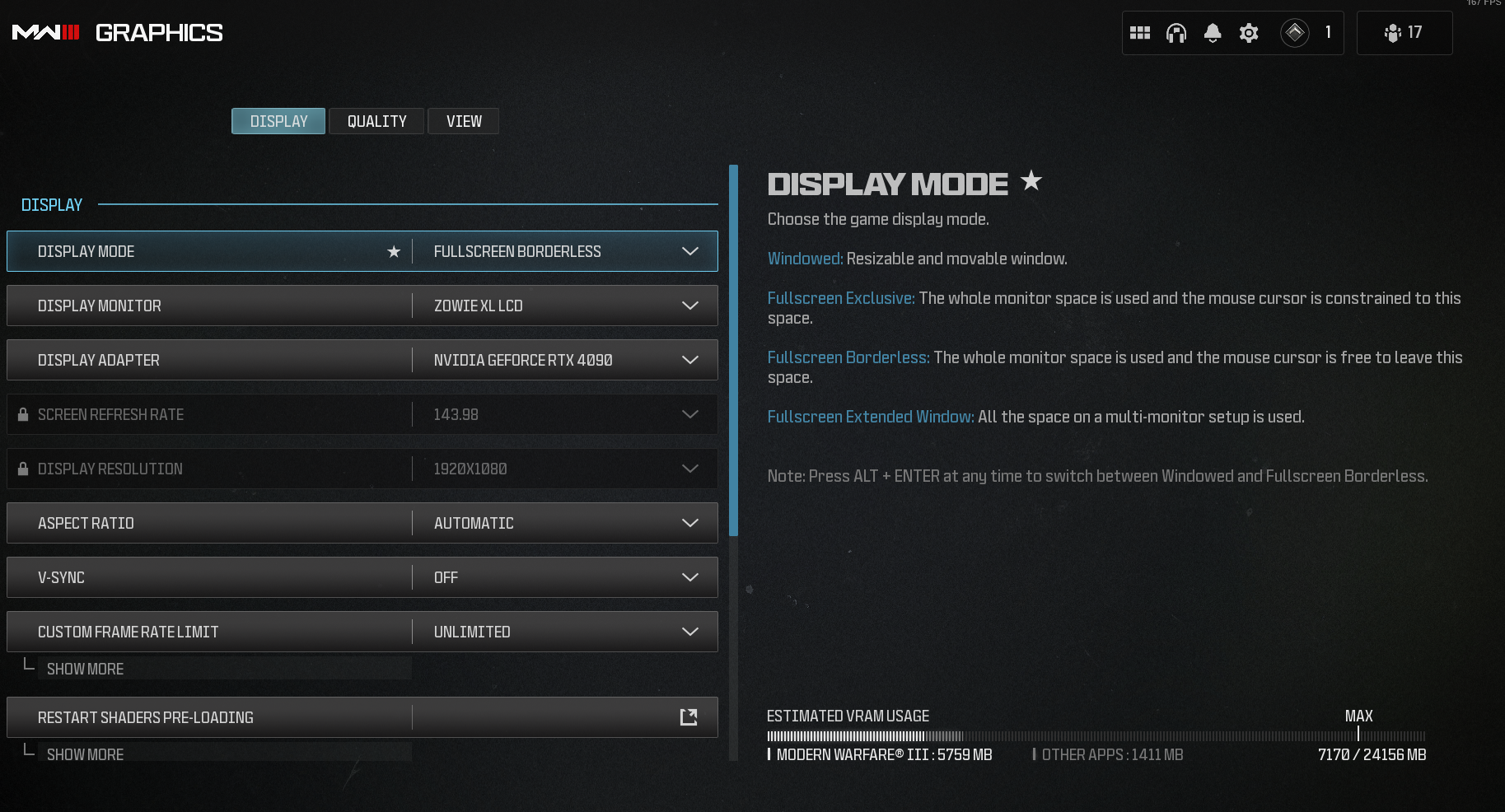 You shouldn’t need to touch these settings too much, as your display settings mainly impact which GPU or monitor you’ll use when playing MW3. Try at all times to run the game in fullscreen.