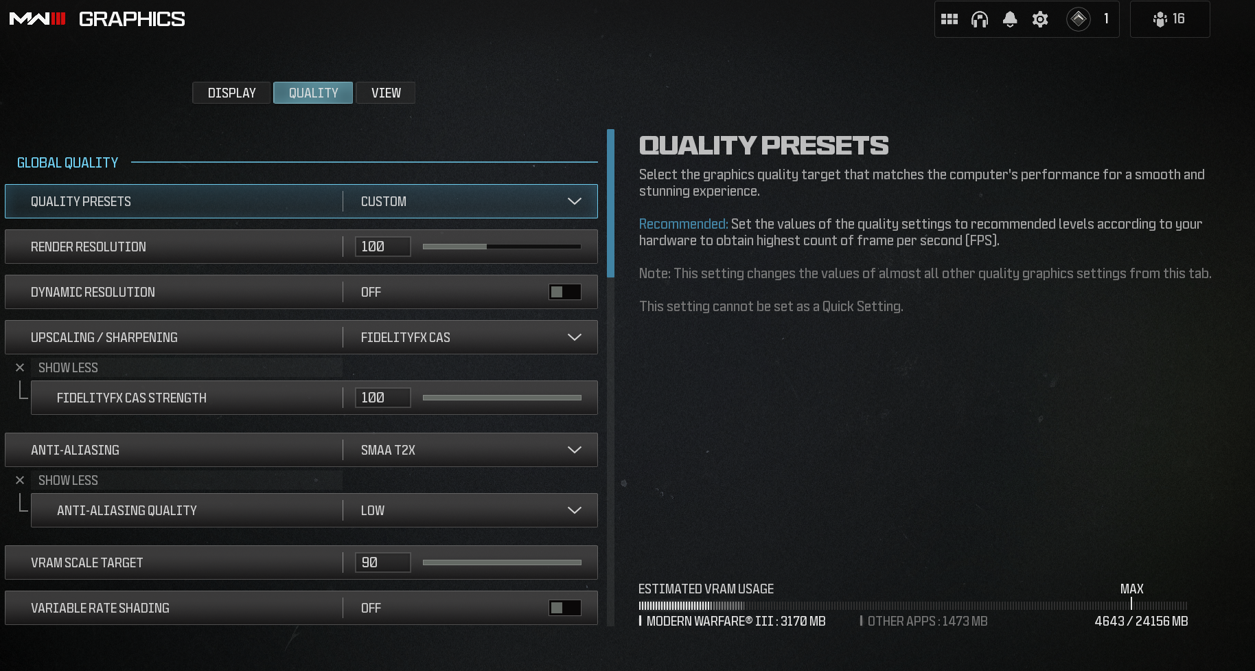 The graphics quality settings will make the most difference to your FPS and overall experience when playing MW3. As always, you can use a default preset and adjust individual settings if you’re struggling to hit your FPS target.