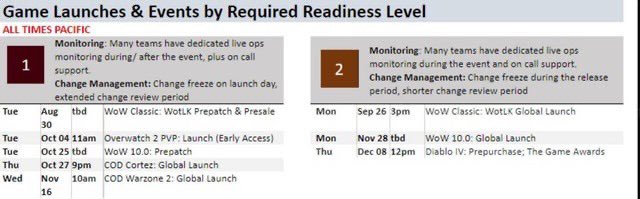 Based on a supposed leak of Activision Blizzard games World of Warcraft, Overwatch, and CoD, the release date for Warzone 2 is set for Nov. 16. The screengrab that was leaked lists Warzone 2’s global launch for 12pm CT on Wednesday, Nov. 16, a few weeks after the Oct. 28 global launch of Modern Warfare II, which is listed as COD Cortez in the screengrab.