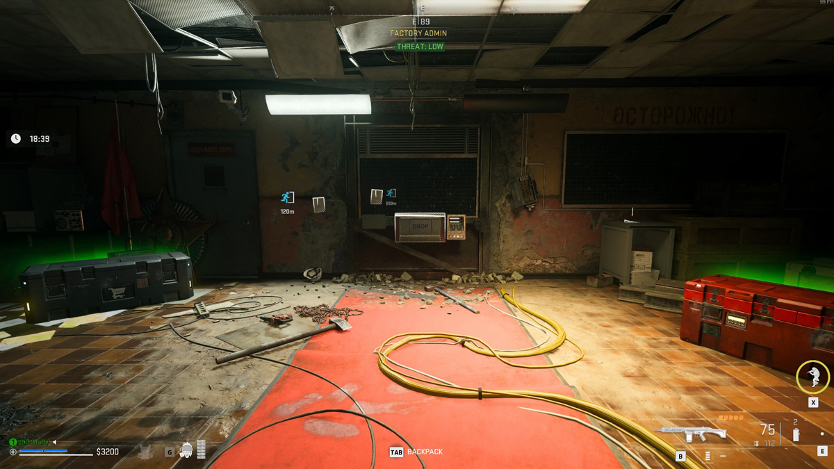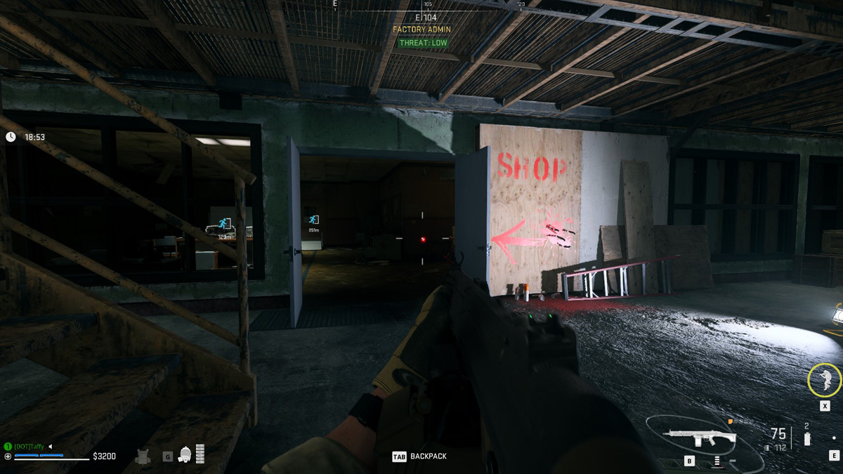 Inside is a larger room with a couple of open levels. You’ll want to stay on the ground floor and look around for a large sign that says “Shop”. Follow the arrows—and the smiley face—and you’ll come across a room with a Secure Buy Station and a Dead Drop. You’ve found the Shopkeeper.