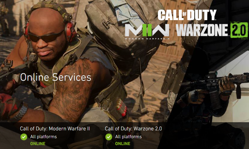 To check and see if the CoD servers are having an outage or are down for official maintenance, first check out the Activision online services page to see if MW2 and Warzone 2 are currently experiencing any issues.