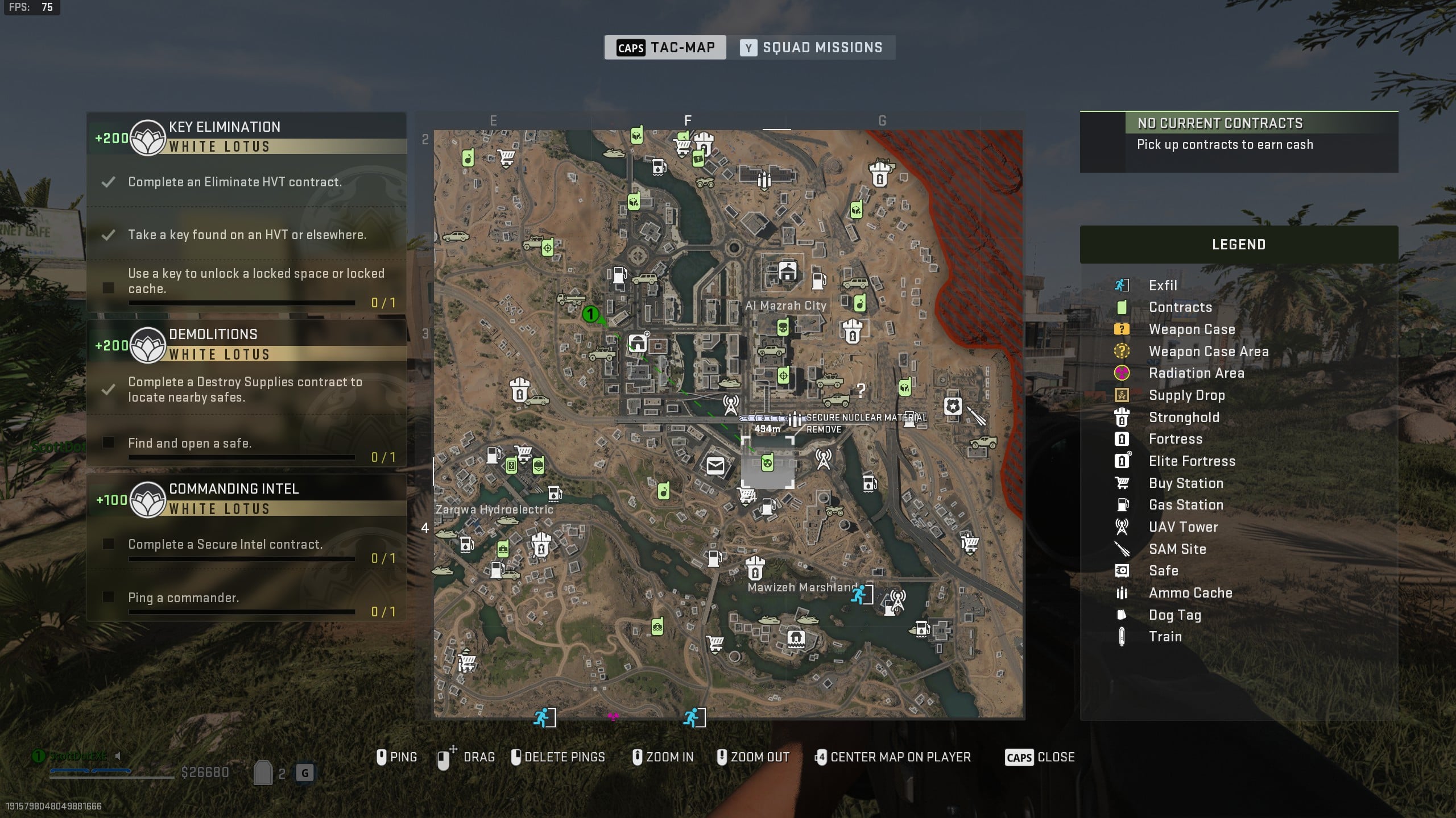 On each DMZ map, there are typically three or four different Secure Nuclear Materials contracts that can be picked up. Starting a Secure Nuclear Materials contract will first have you find a Geiger Counter, which you will then use to locate two or three nuclear caches that each contain Nuclear Fuel Rods.