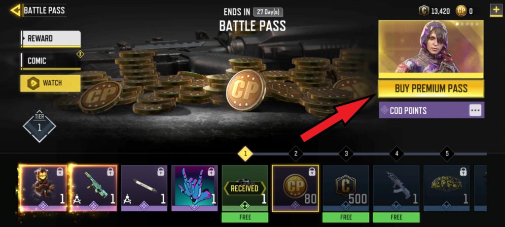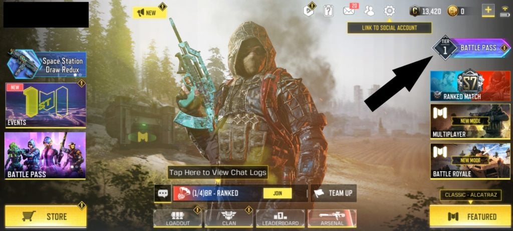Click on the Battle Pass option on the home screen of CoD: Mobile