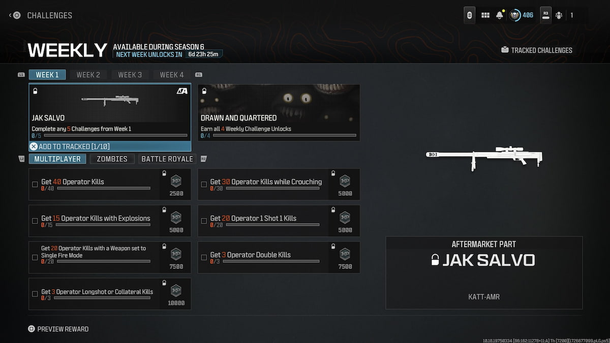 To unlock the JAK Salvo in MW3, players must complete any five weekly challenges in MW3’s season six, week one. The challenges can be finished in any mode, including MW3 multiplayer, Warzone, or MW3 Zombies.