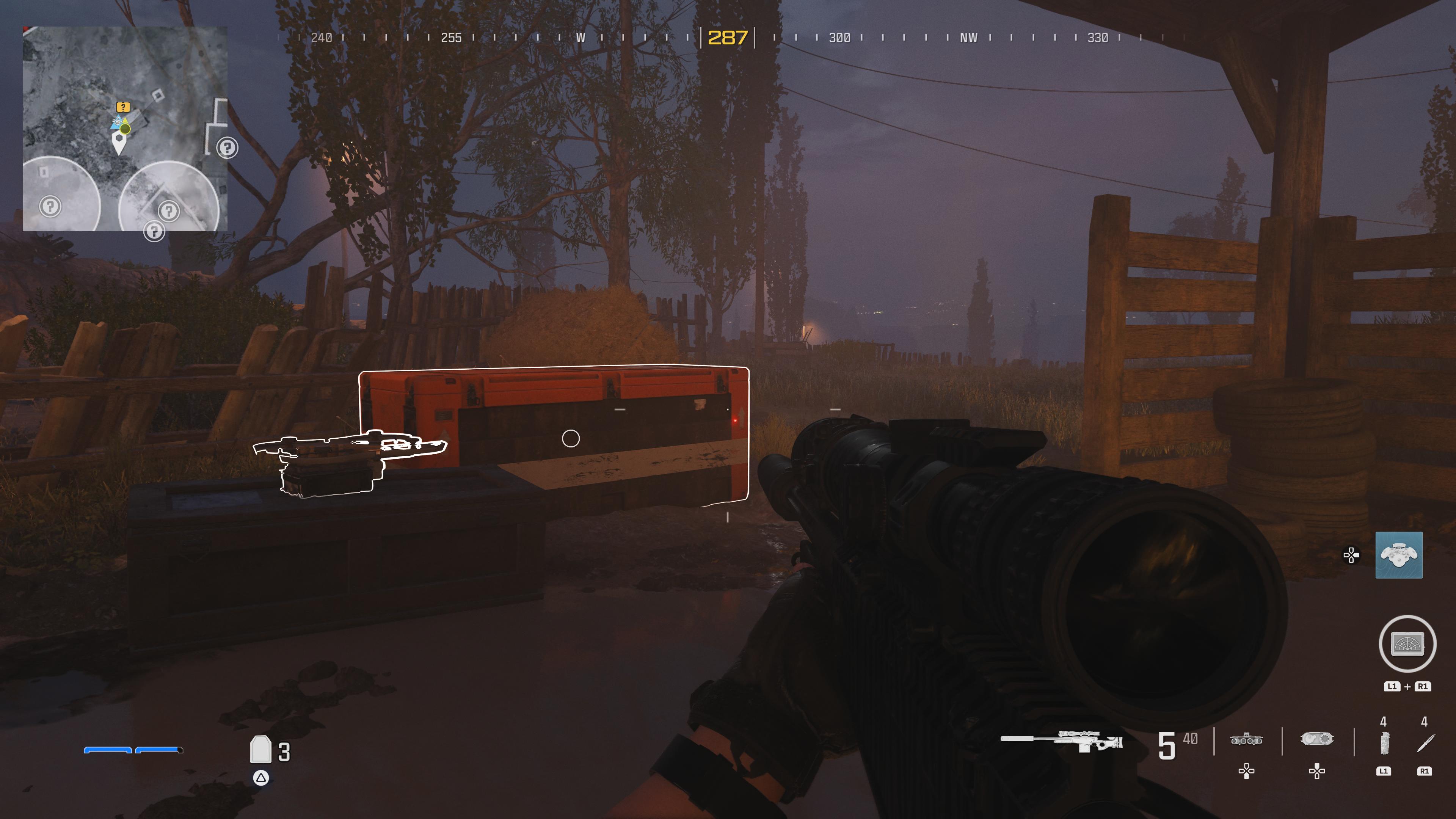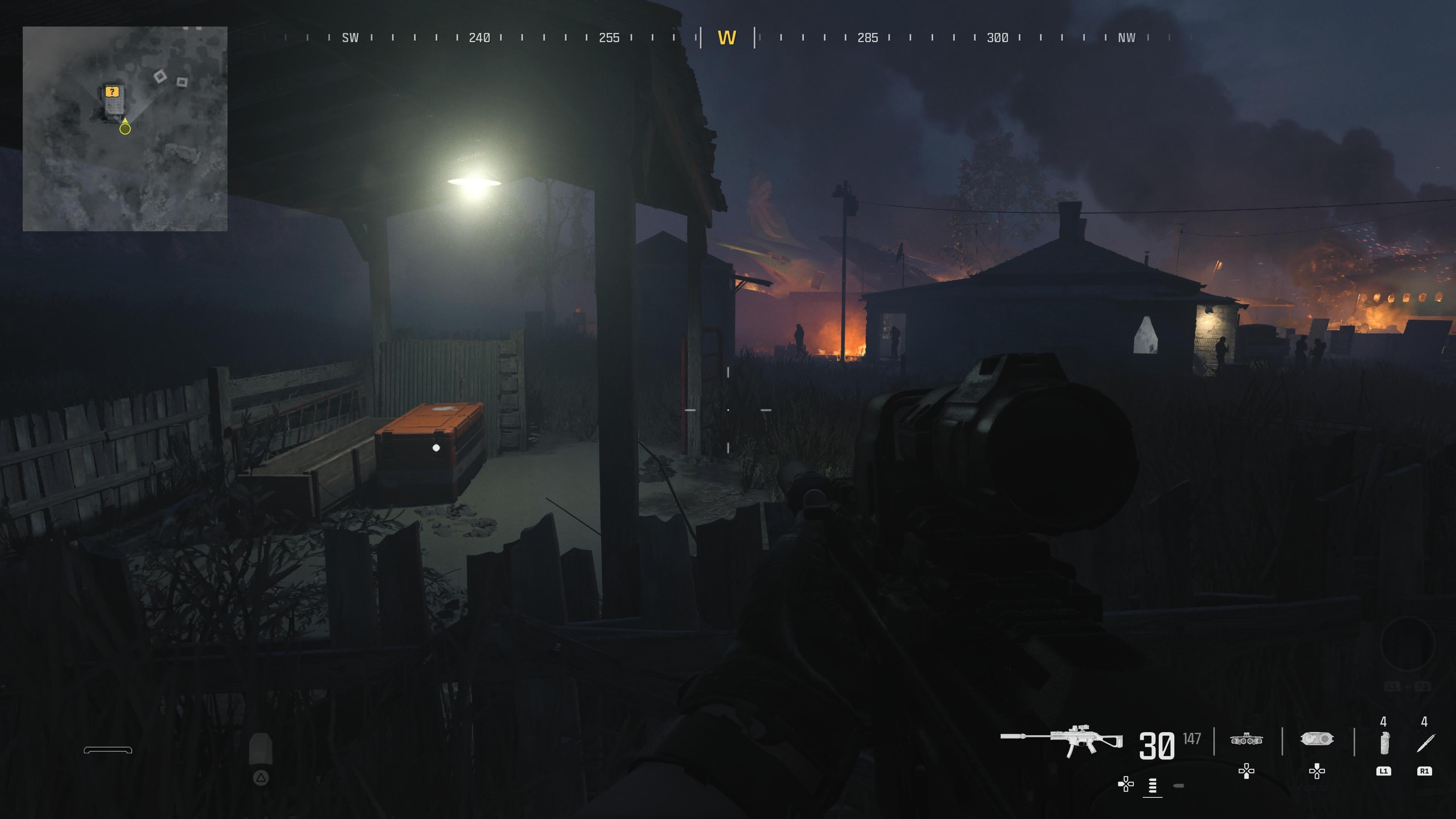 | Silenced M4 | E3 | Stick on the northern perimeter of the map. Kill the armored guard underneath the lamppost. Then, kill the lower-tiered guard to the left of him. The supply crate is behind the second guard. |