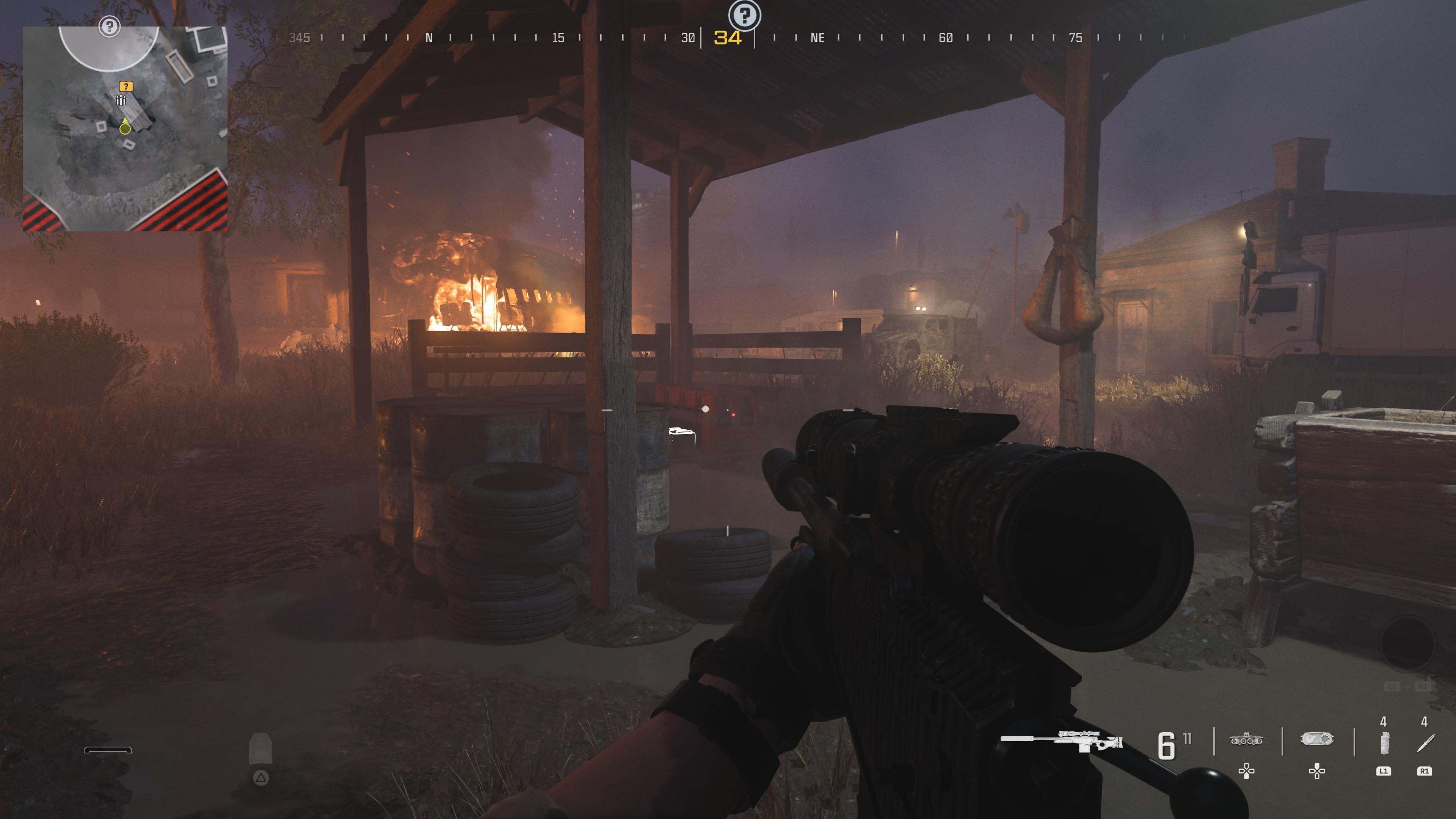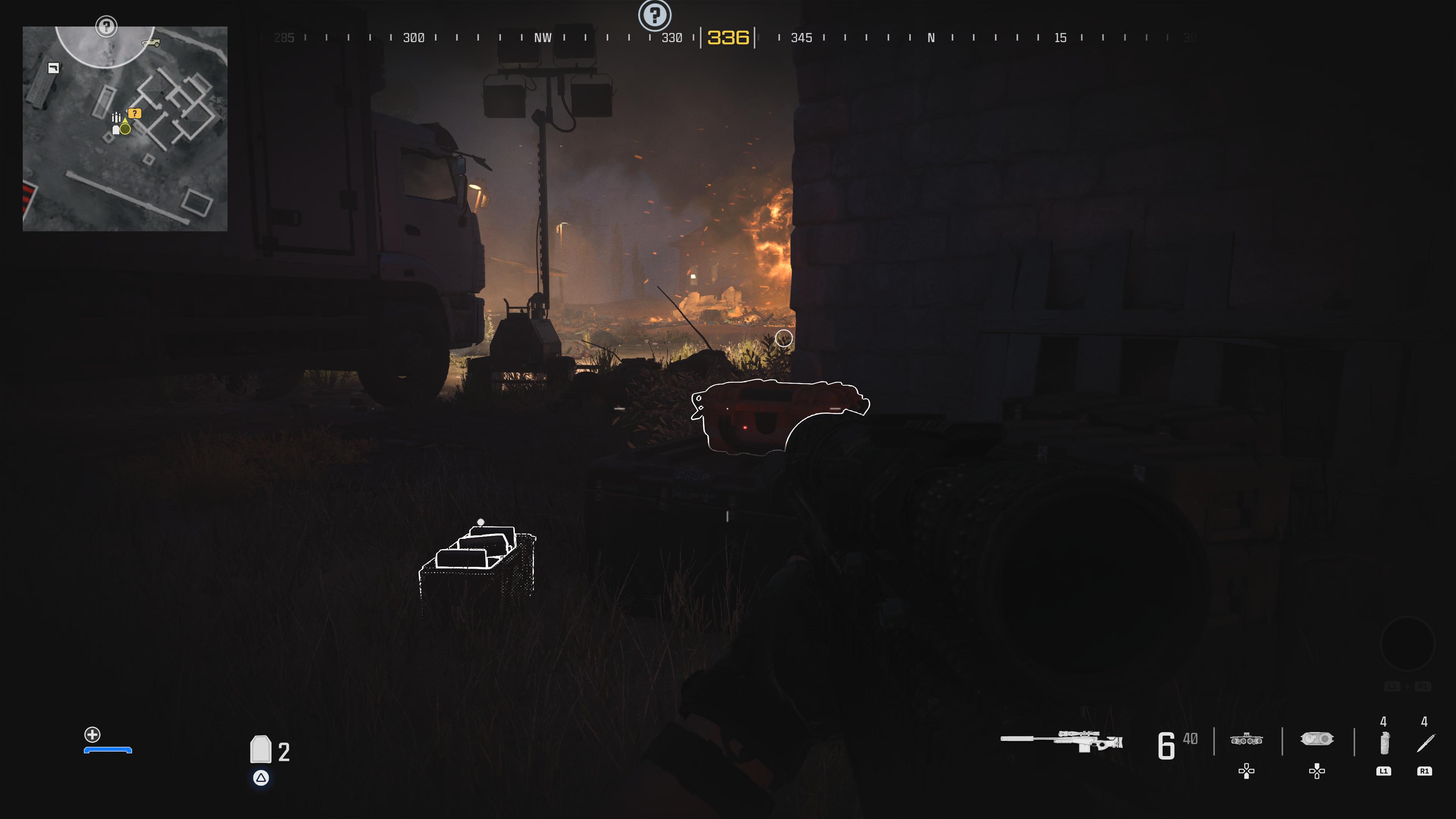 If you are completing this on a higher difficulty, I recommend clearing the southwest side of the map first. Follow the southern fence along and use the sniper to pick off enemies standing inside buildings and on the outside. Look out for the yellow alert indicator, as a few will notice their comrades go down. When you notice this, hide in cover and use the sniper’s optic to find the alert guard. You should only alert one enemy at a time with this tactic.
