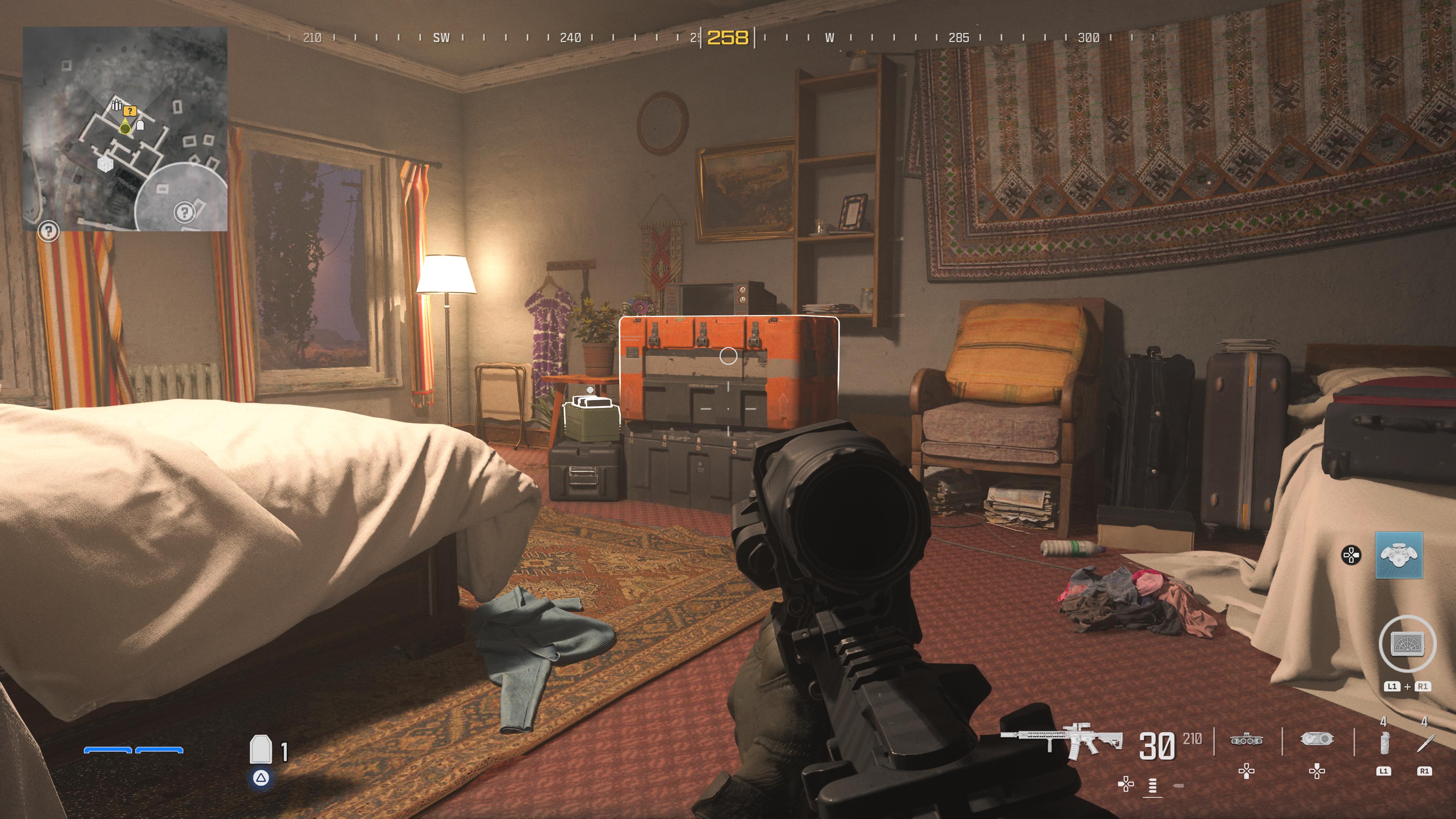 | Kastov 762 | E5 | Head inside the building. Open the door to the supply crate slowly. Peek past the door and ads with Victus XMR. Line up a collat through the window on the two guards outside. Another soldier will be alerted. Line up the next shot through the window by watching the yellow diamond on the mini-map for his movements. The supply crate in this room has the Kastov 762. |