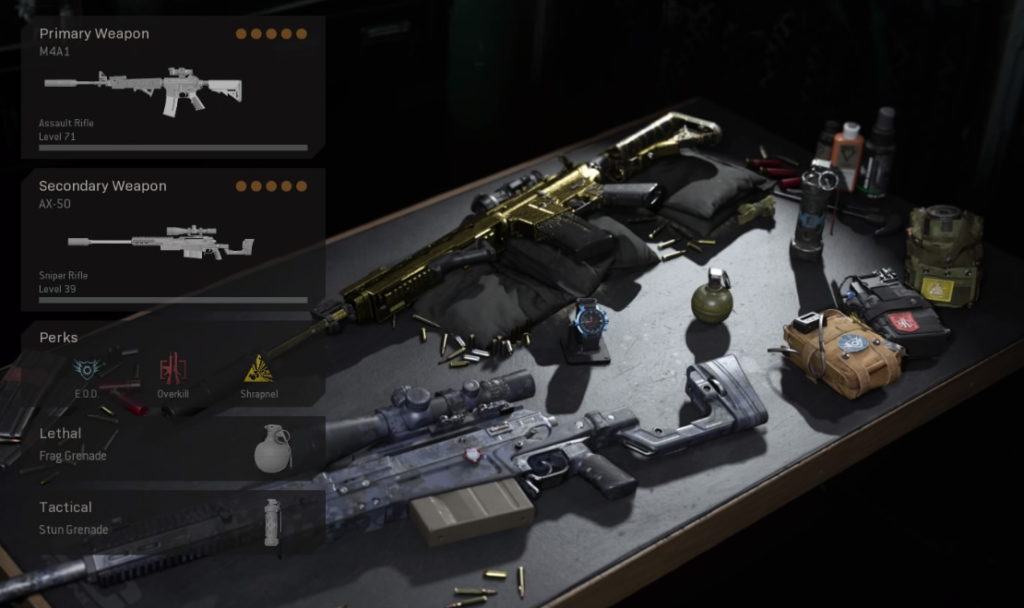 A sniper rifle is basically a necessity in Warzone. Pairing it with an assault rifle that can handle medium and long-range encounters is a good choice. Perks one and three can be interchanged here, but E.O.D. will help you play more aggressively and Shrapnel can help flush enemies out of camping spots.