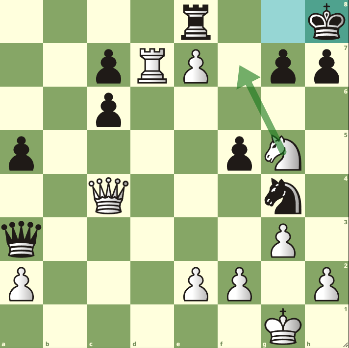The queen pins the e7 pawn to the king. Castling away also doesn’t guarantee your safety, as will become clear from this next example. When the king is forced into the corner and gets checkmated by the lone knight, the ensuing position is sometimes also referred to as Philidor’s mate. This is usually forced by ways of a queen sacrifice, as it was in the game below in 1990 between Jan Timman and Nigel Short:
