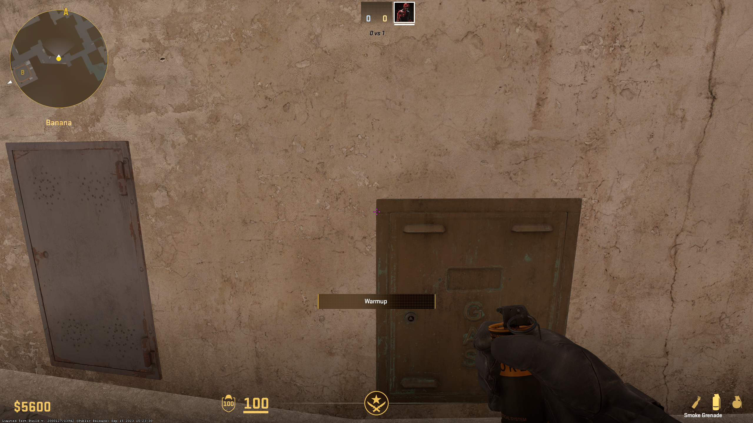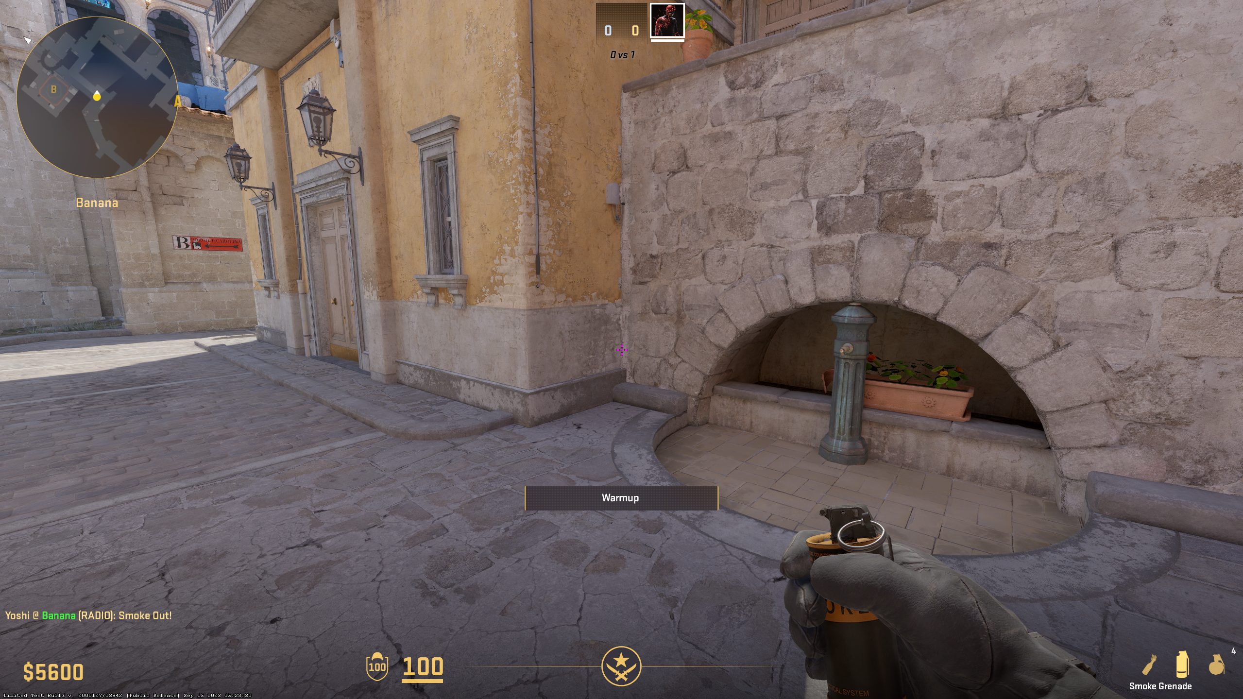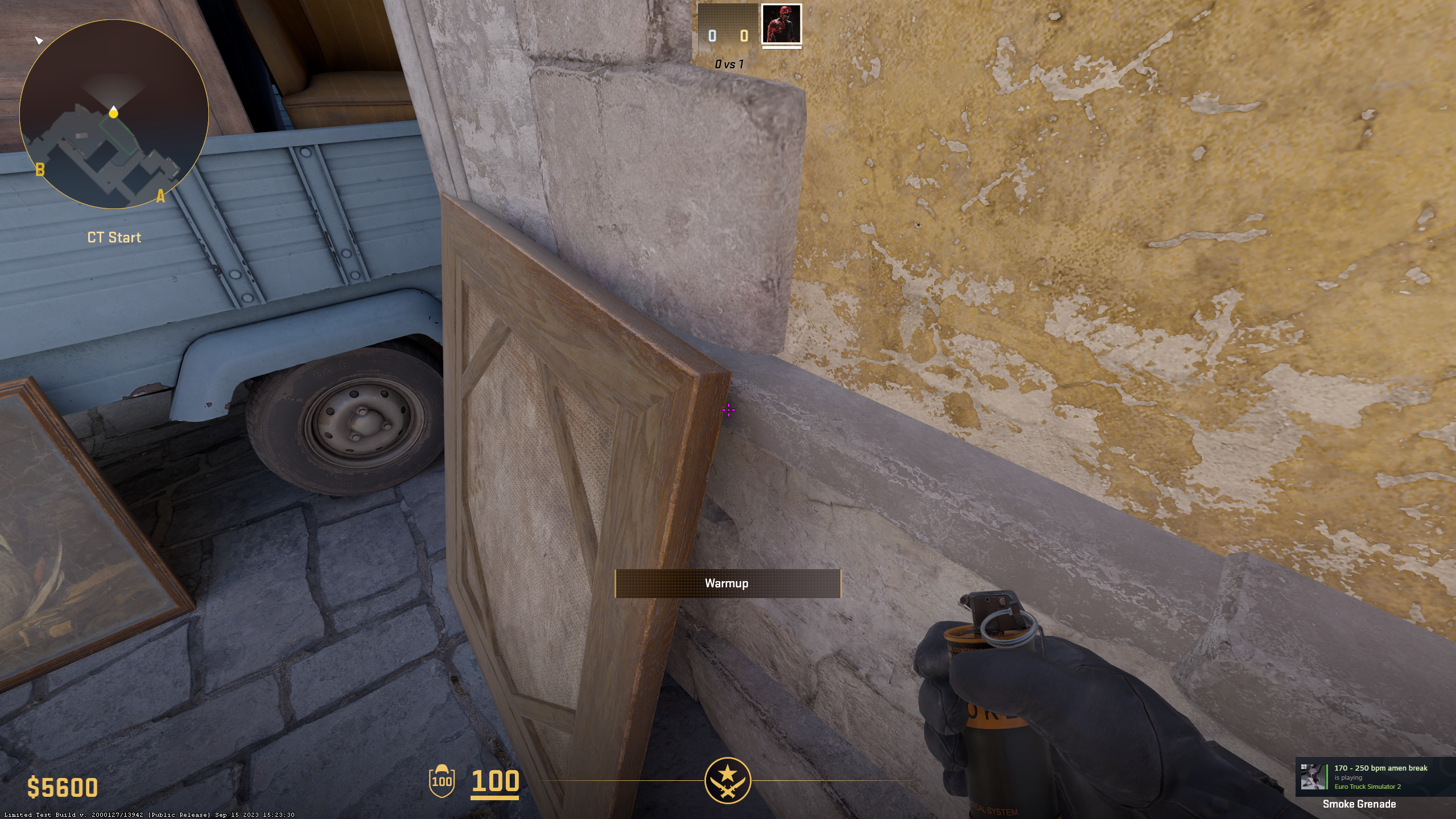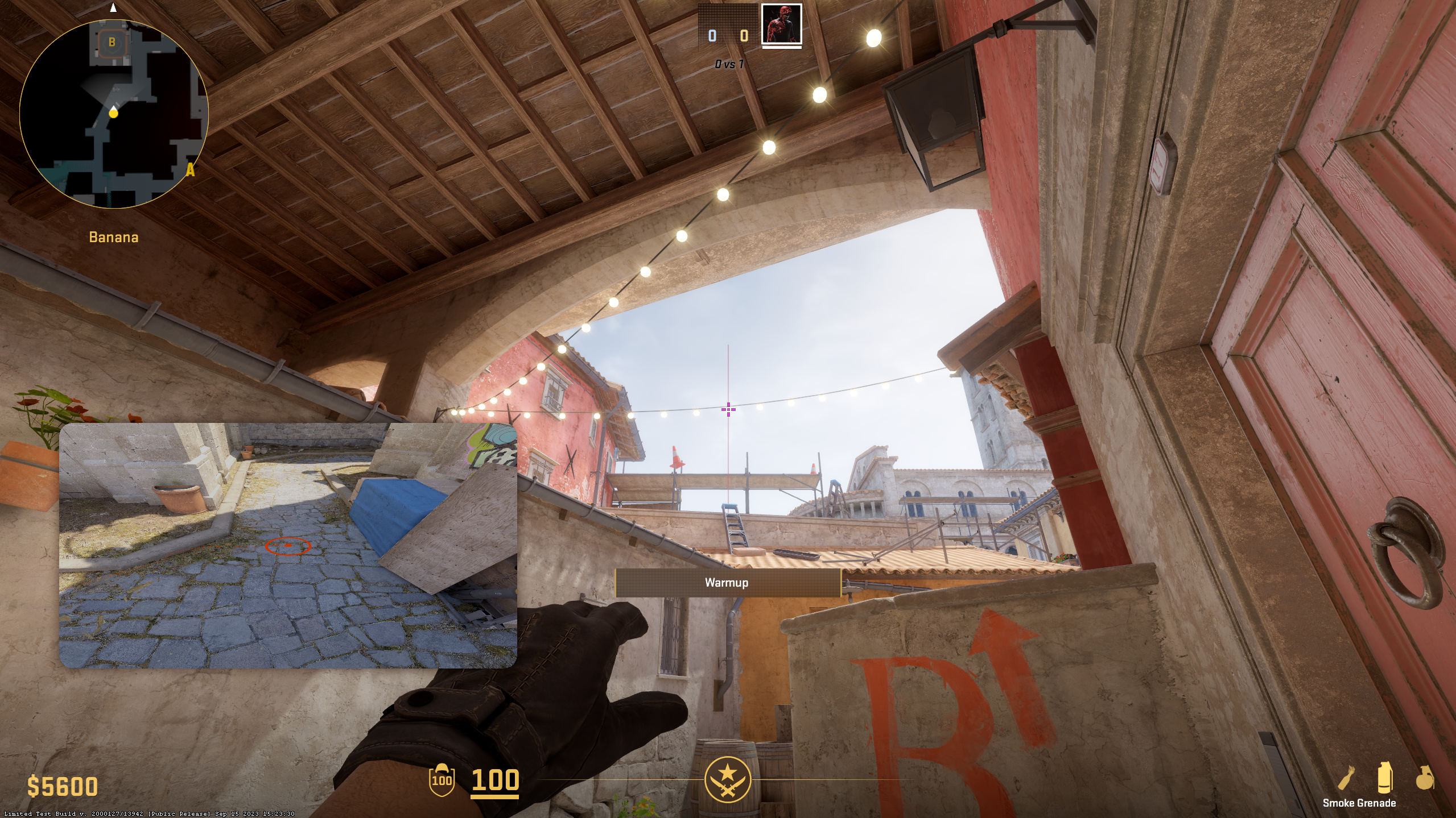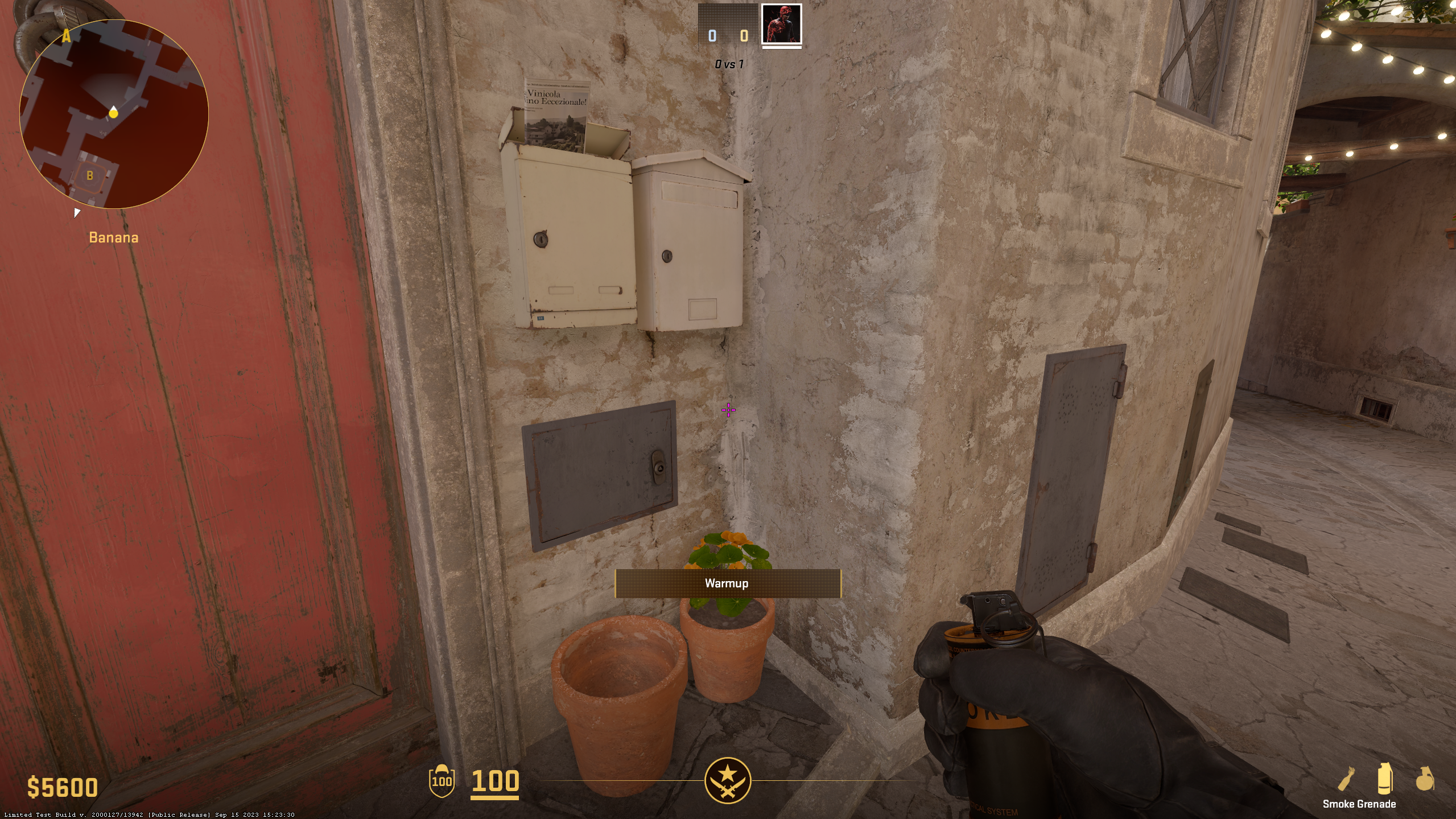 CTs often like to hide in Quad, as it’s one of the harder positions to take care of for Terrorists. To force any enemies in there to run away, stand near the Barrel and Wood Boar on top Banana (sadly, it’s not Car anymore in CS2) and throw Molotov like shown above. It should smoke out any CTs in Quad.