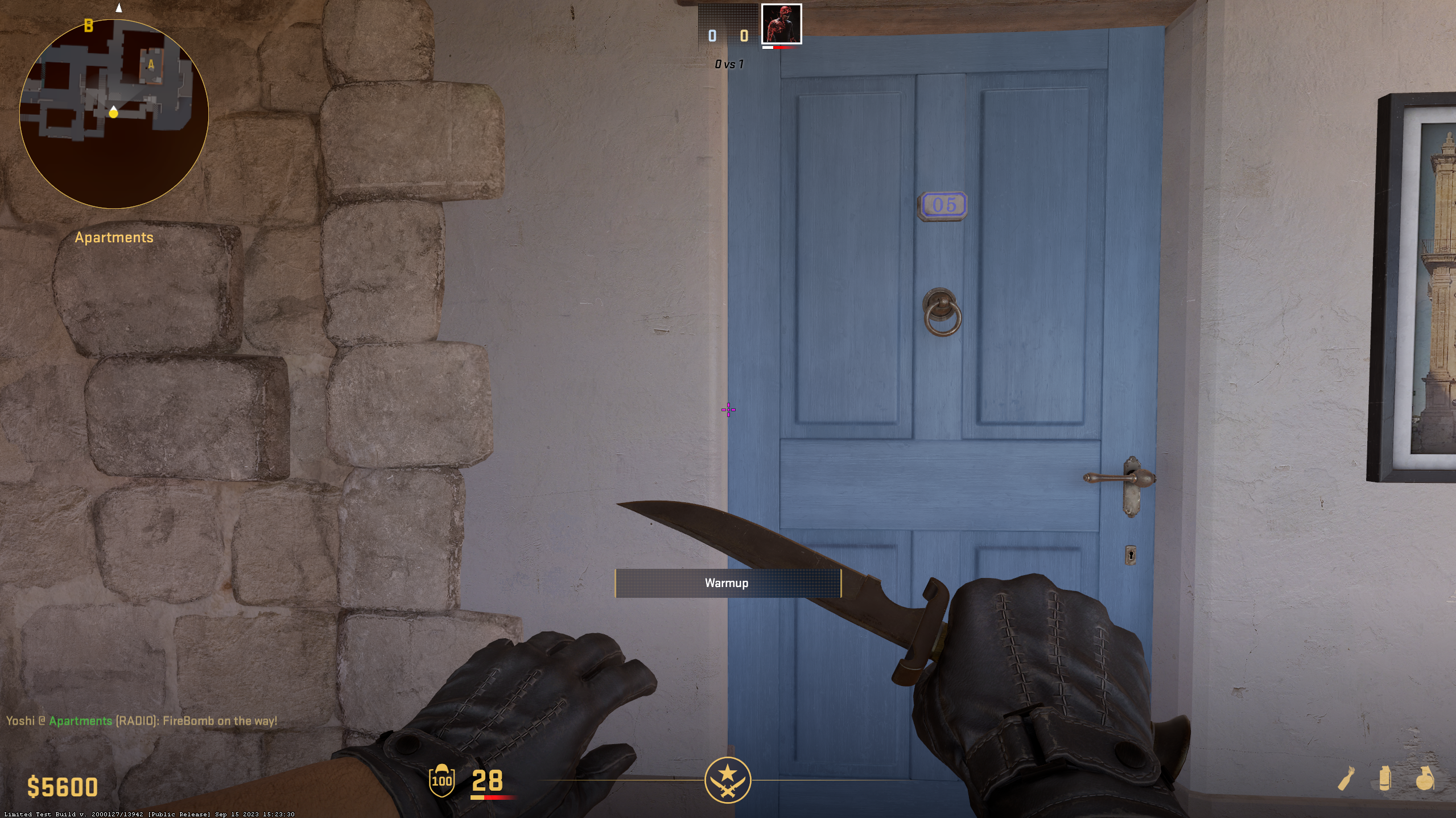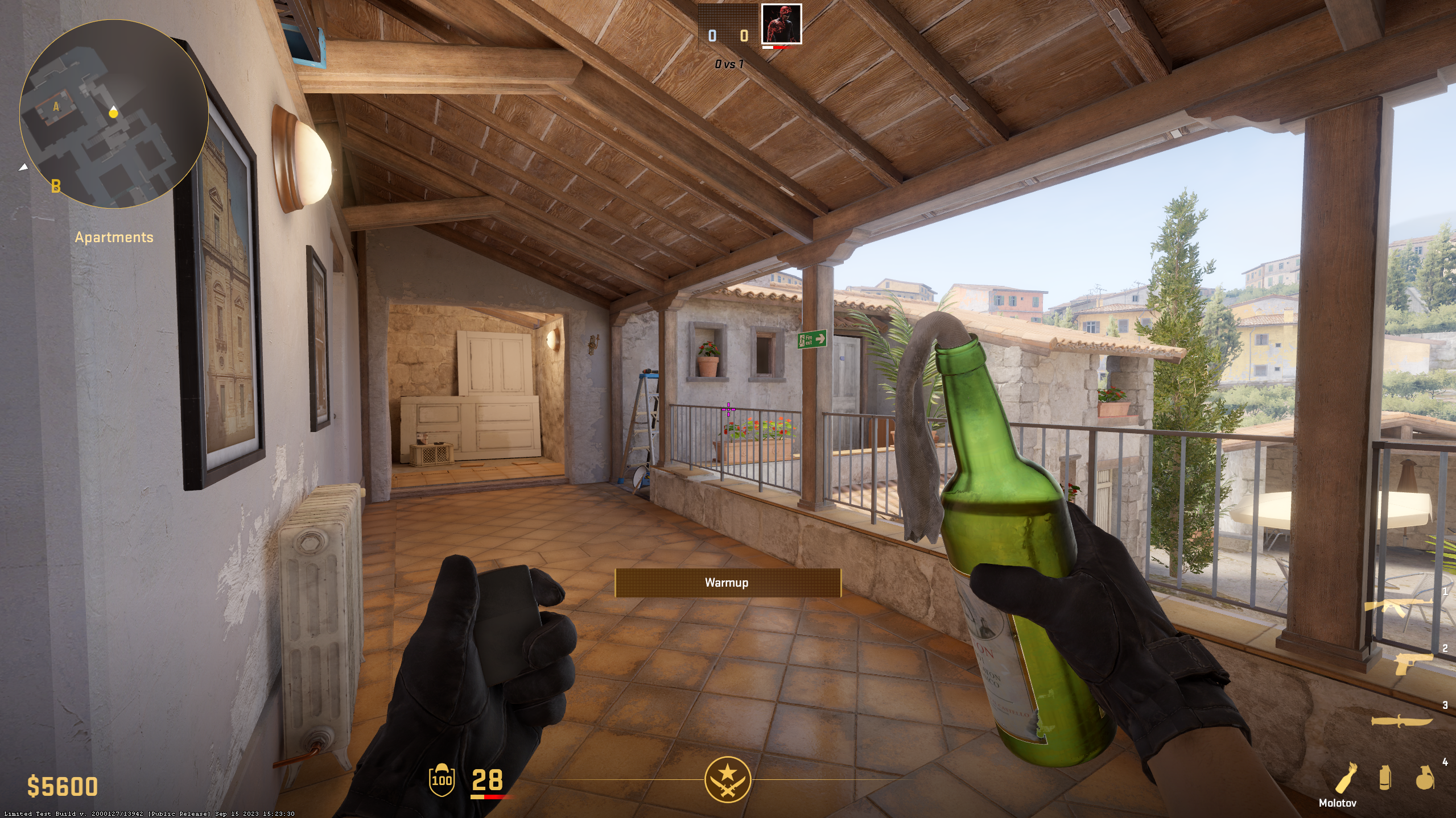 Clearing Pit when taking A site is often referenced as one of the toughest aspects of Inferno. To easily force CTs outside the position, stand in front of the blue door in Apartments, as shown above. When you properly place your crosshair, keep running forward and do a jump throw when you contact the fence. It’s a bit hard to master, but if you practice a bit, you will learn a perfect Pit Molotov.