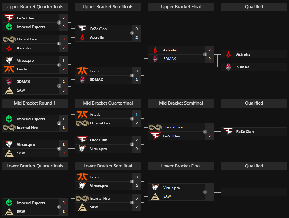 - 12:30pm: FaZe 2-0 Imperial | M80 1-2 BetBoom