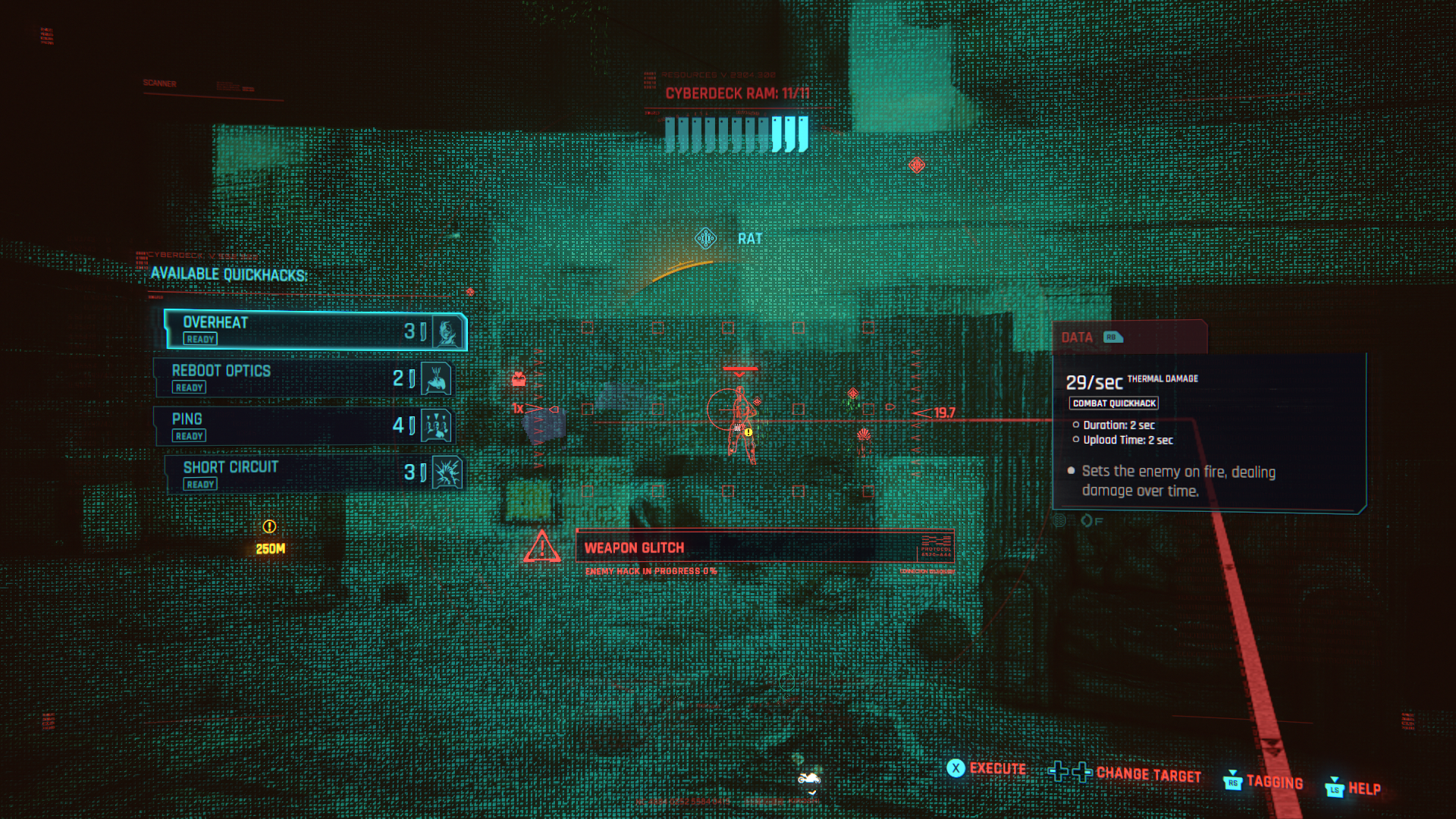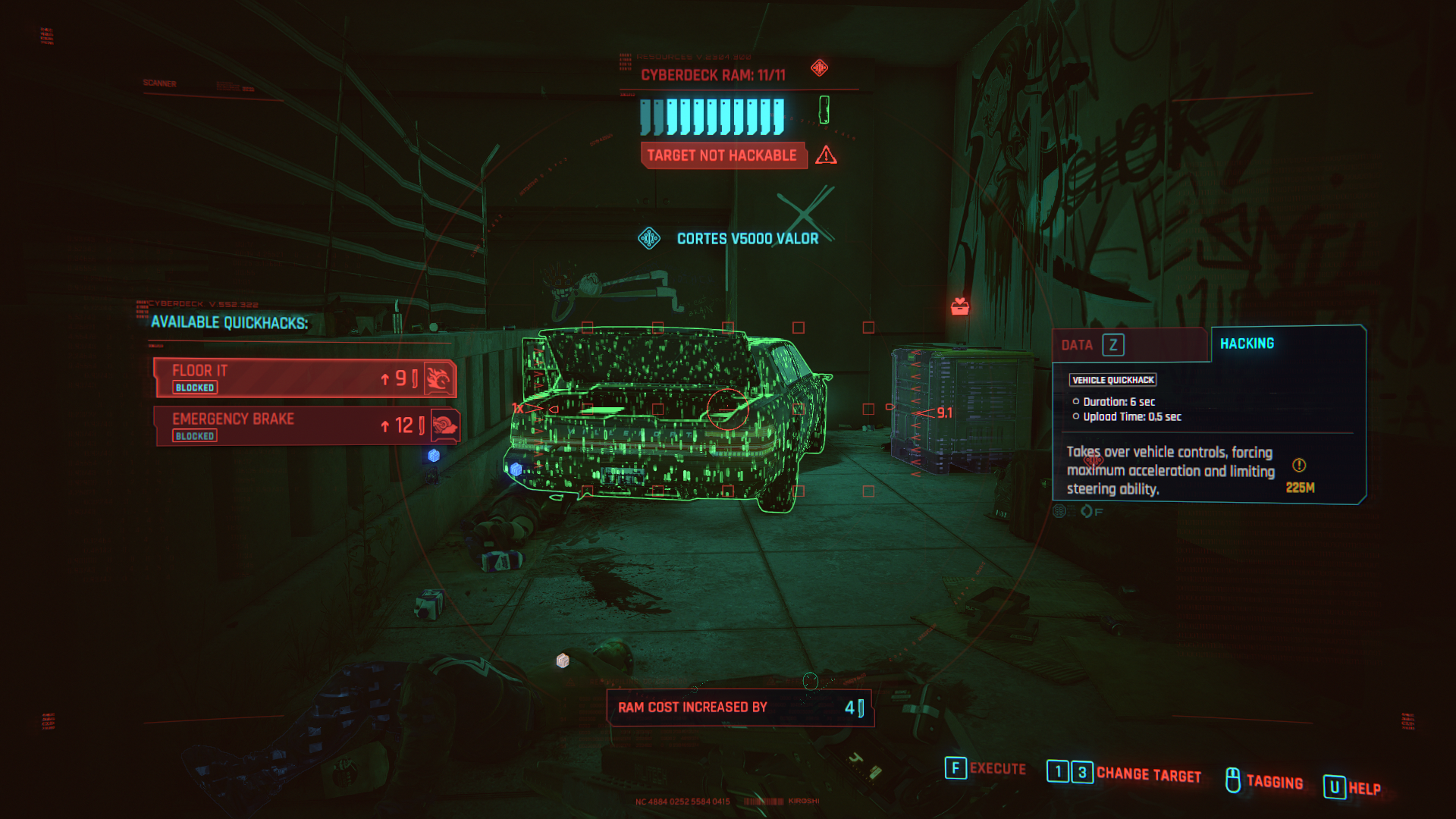 When you focus on any hackable person or object, a list of all possible Quickhacks will appear, and each one will include the RAM cost needed. At the top of your screen, you’ll be able to see your total RAM and how much is currently available.