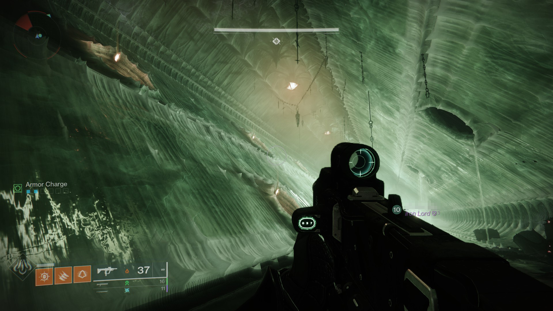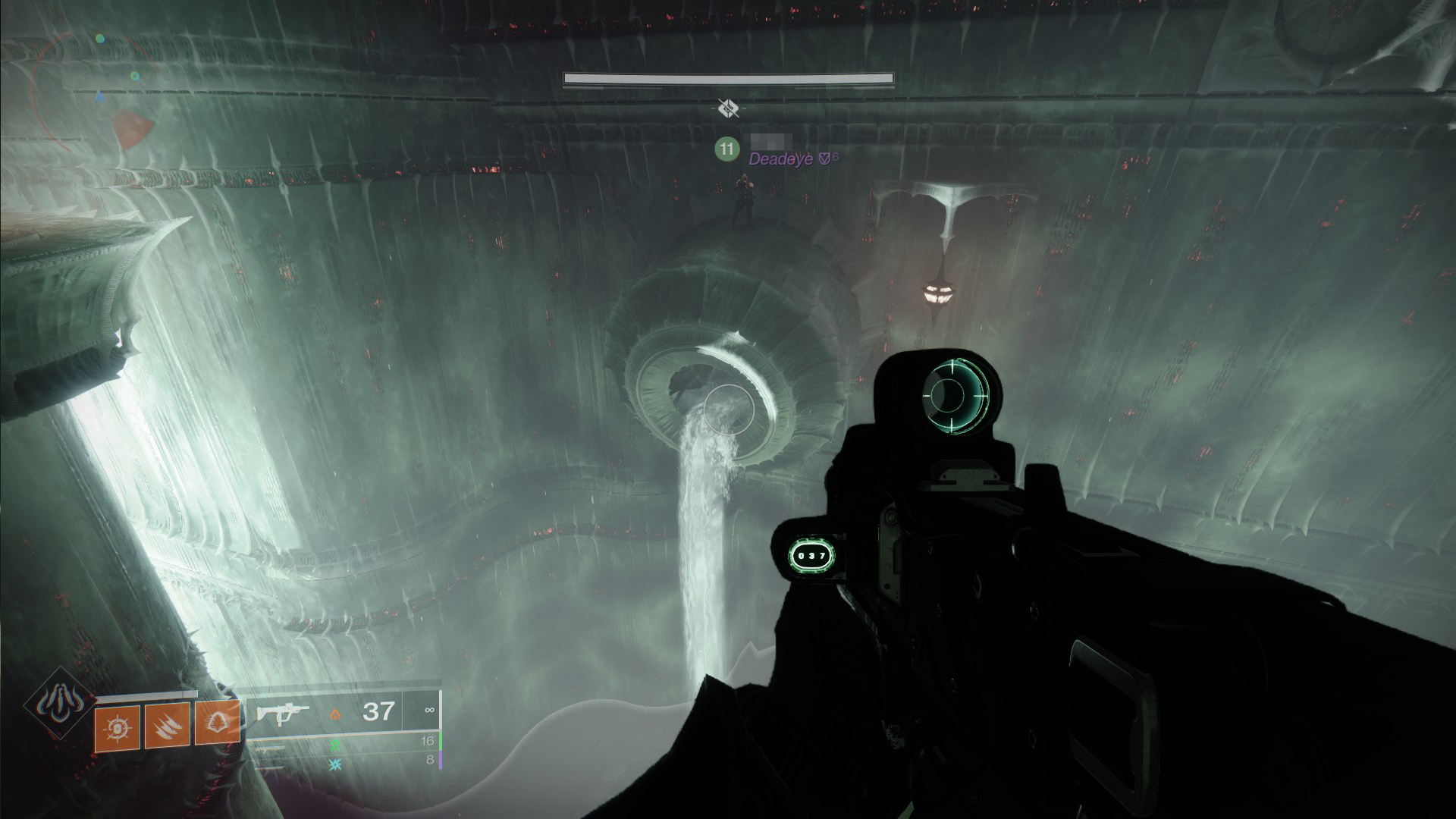 Take down Ecthar, Shield of Savathûn, and you’ll come out on the open sea with a gargantuan maritime creature in the distance. Follow the path until you drop into a small hallway leading to a small room with Hive enemies and a Blistering Knight. Clear the area, then look for a grate on the left side of the hallway (from where you came in).