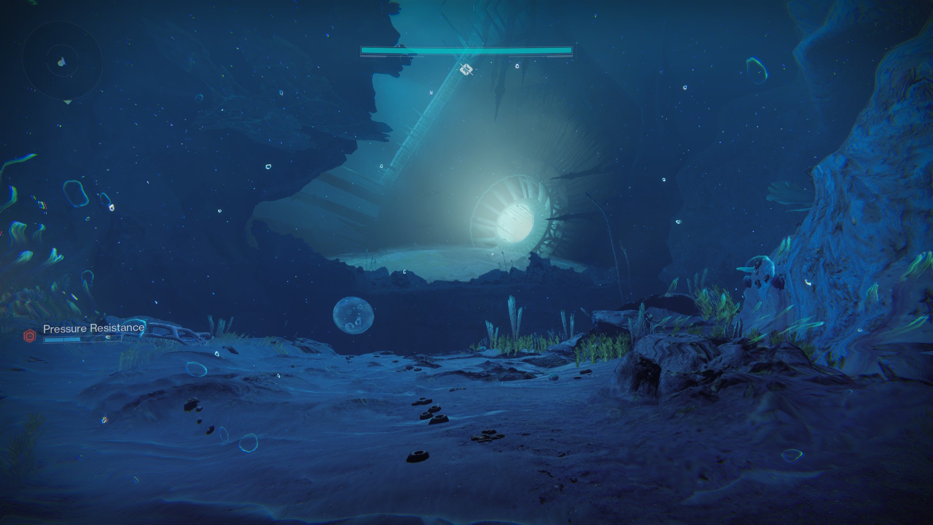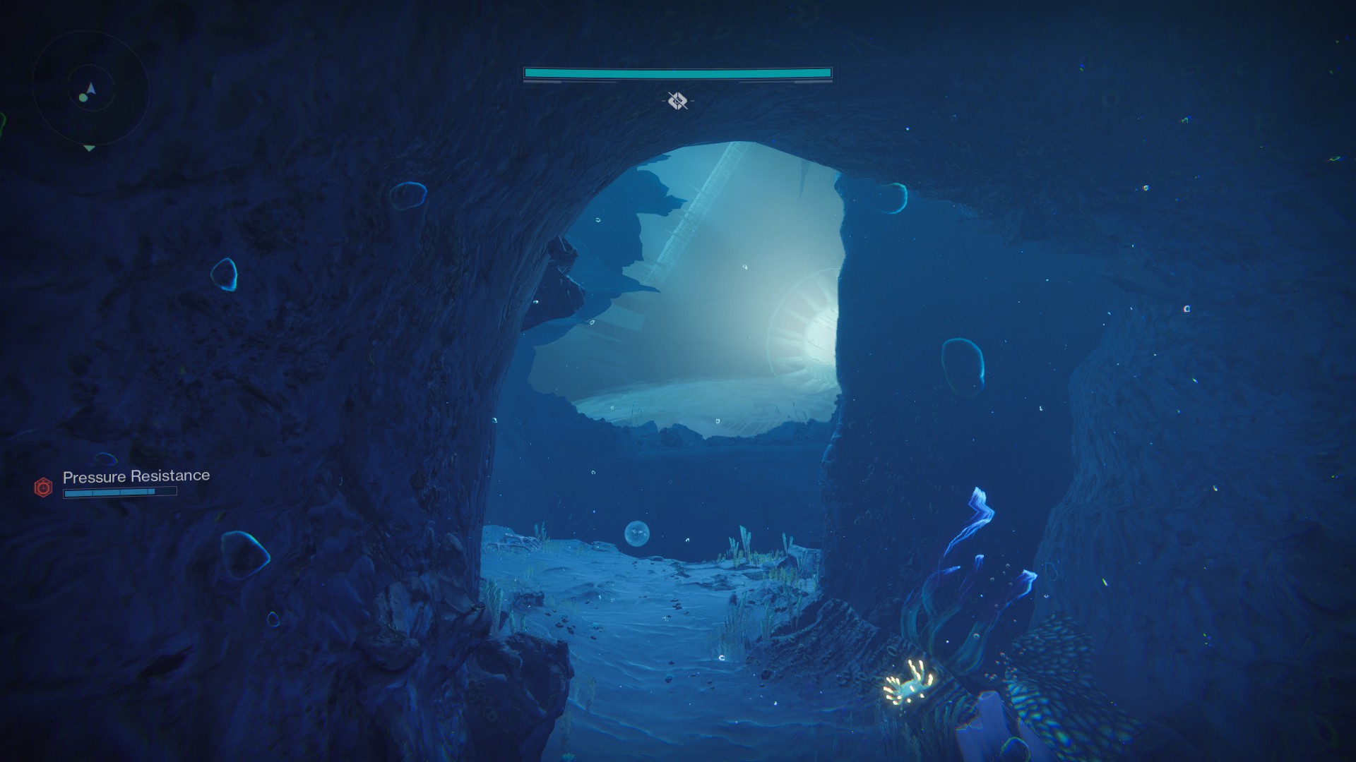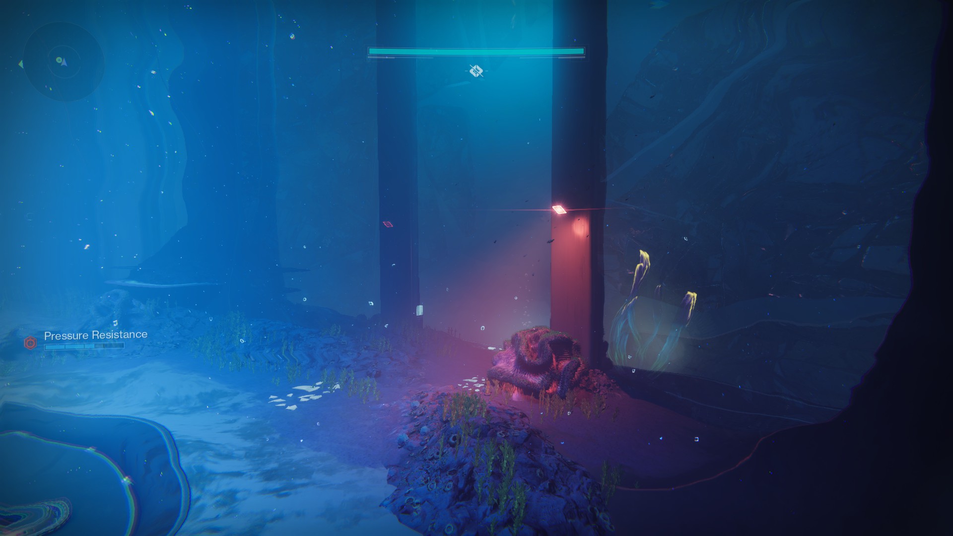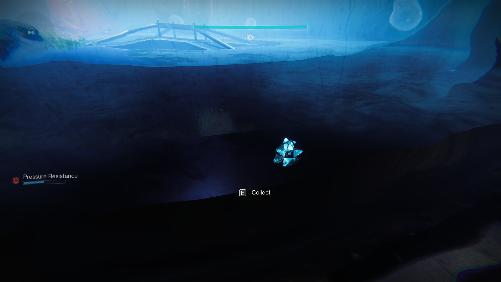 Wade through the water until you can spot the wreckage of the Hive ship from afar. Keep going toward the remains of the ship, and you’ll come out on a hallway that faces the wreckage directly, with a bubble in front of you. Look for a coral on the right to spot an alcove, then find another collectible inside.