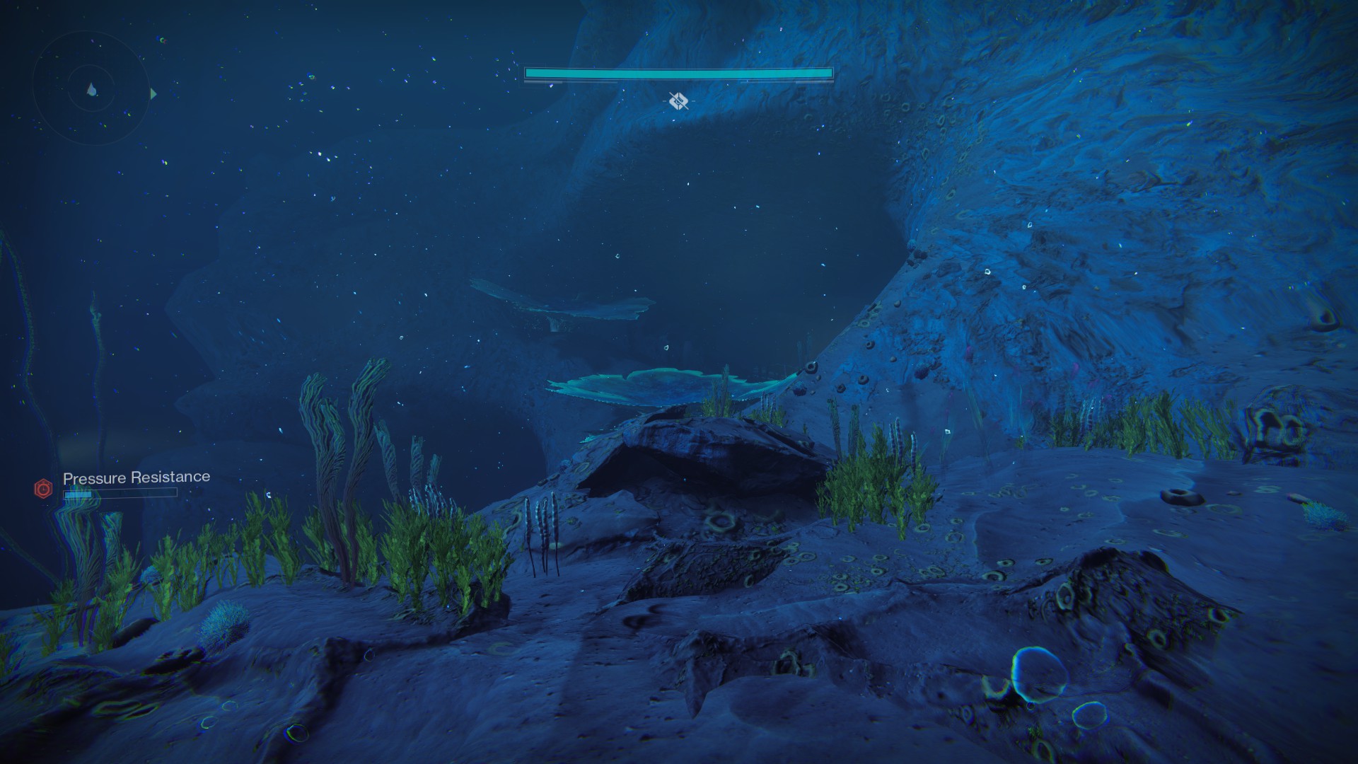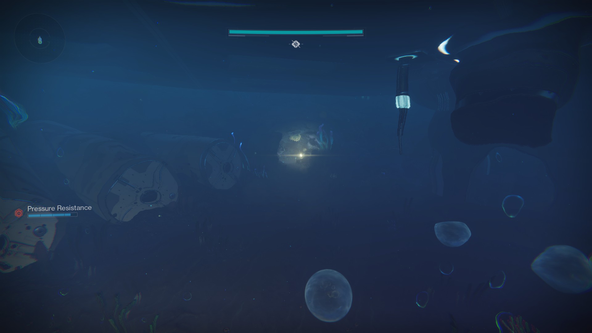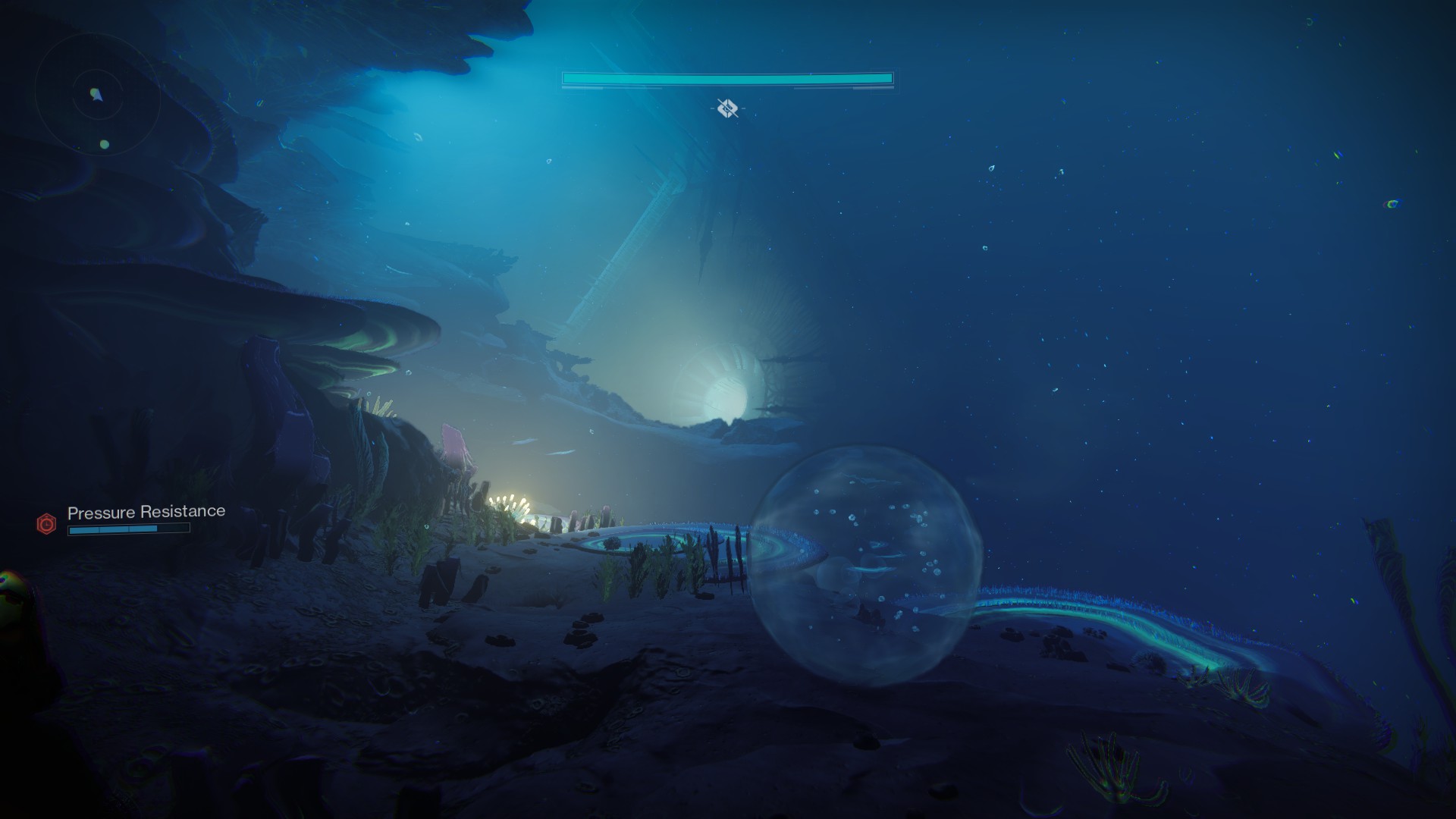 Wade through the water until you can spot the wreckage of the Hive ship from afar. Keep going toward the remains of the ship, and you’ll come out on a hallway that faces the wreckage directly, with a bubble in front of you. Look for a coral on the right to spot an alcove, then find another collectible inside.