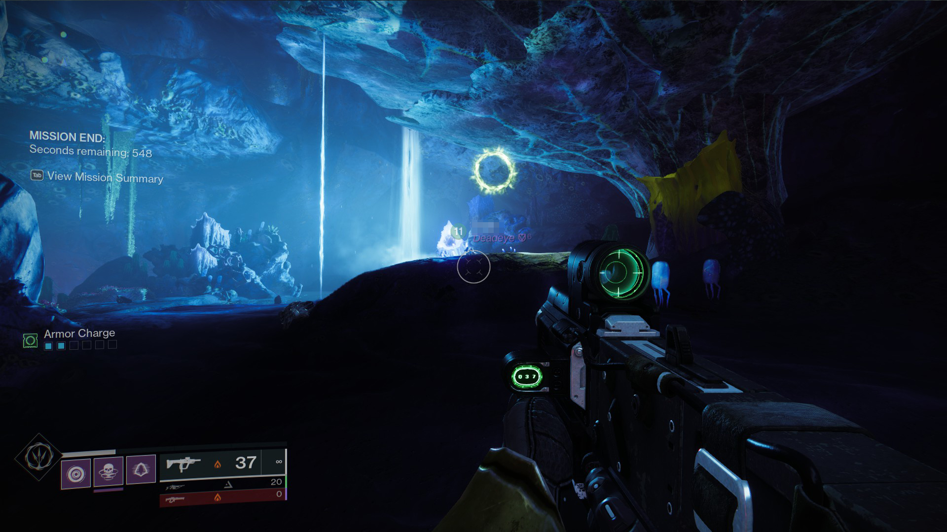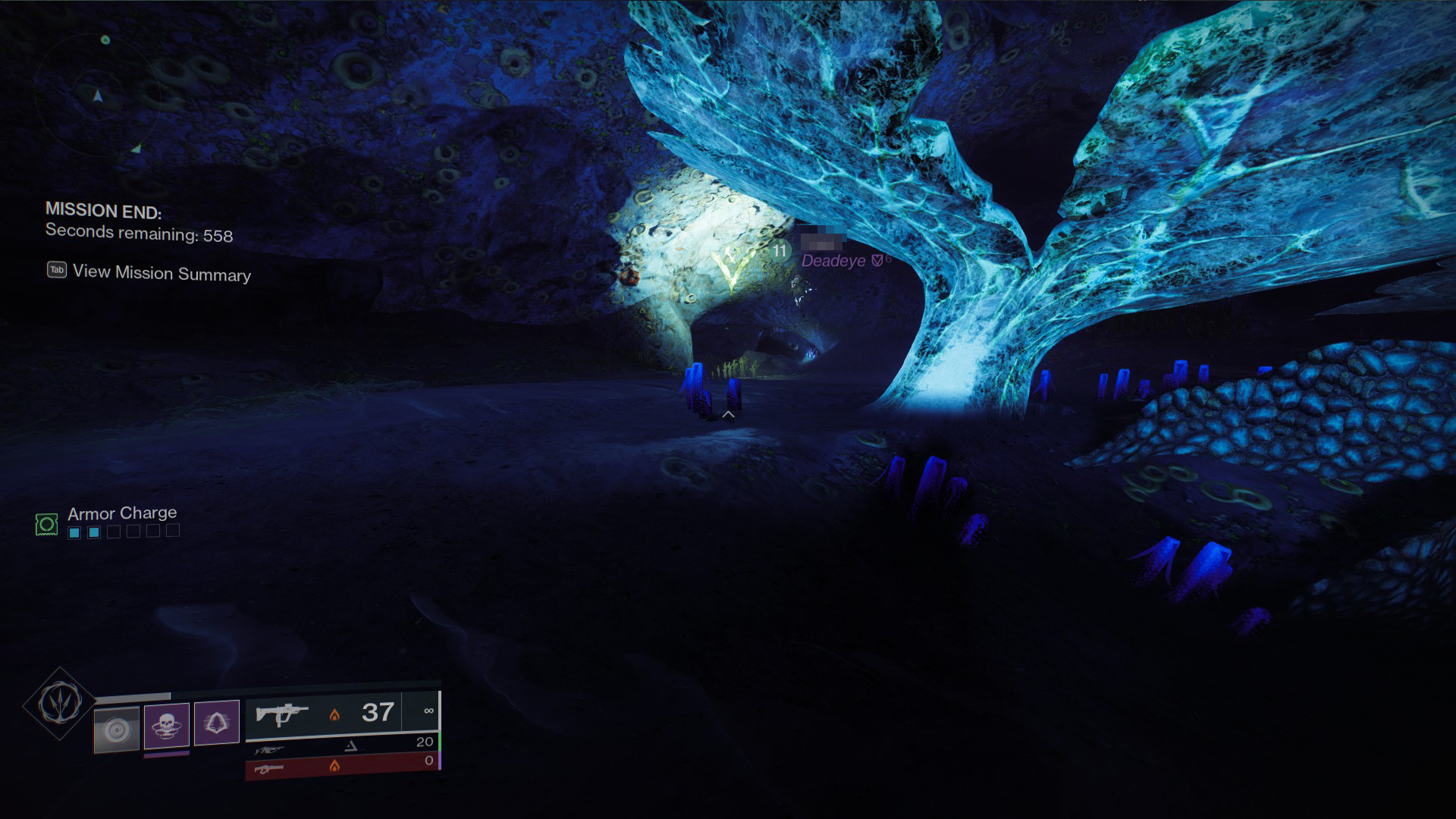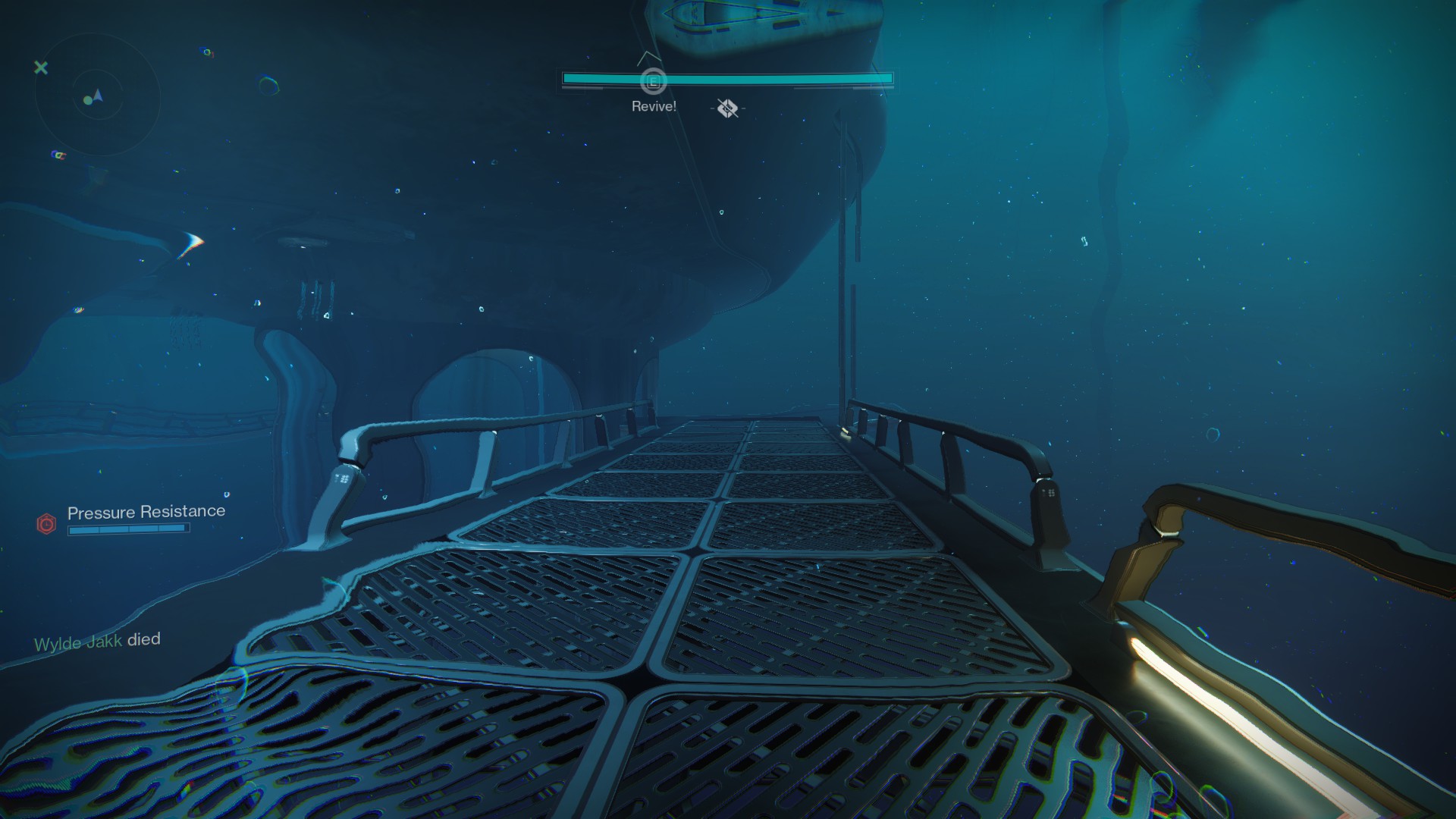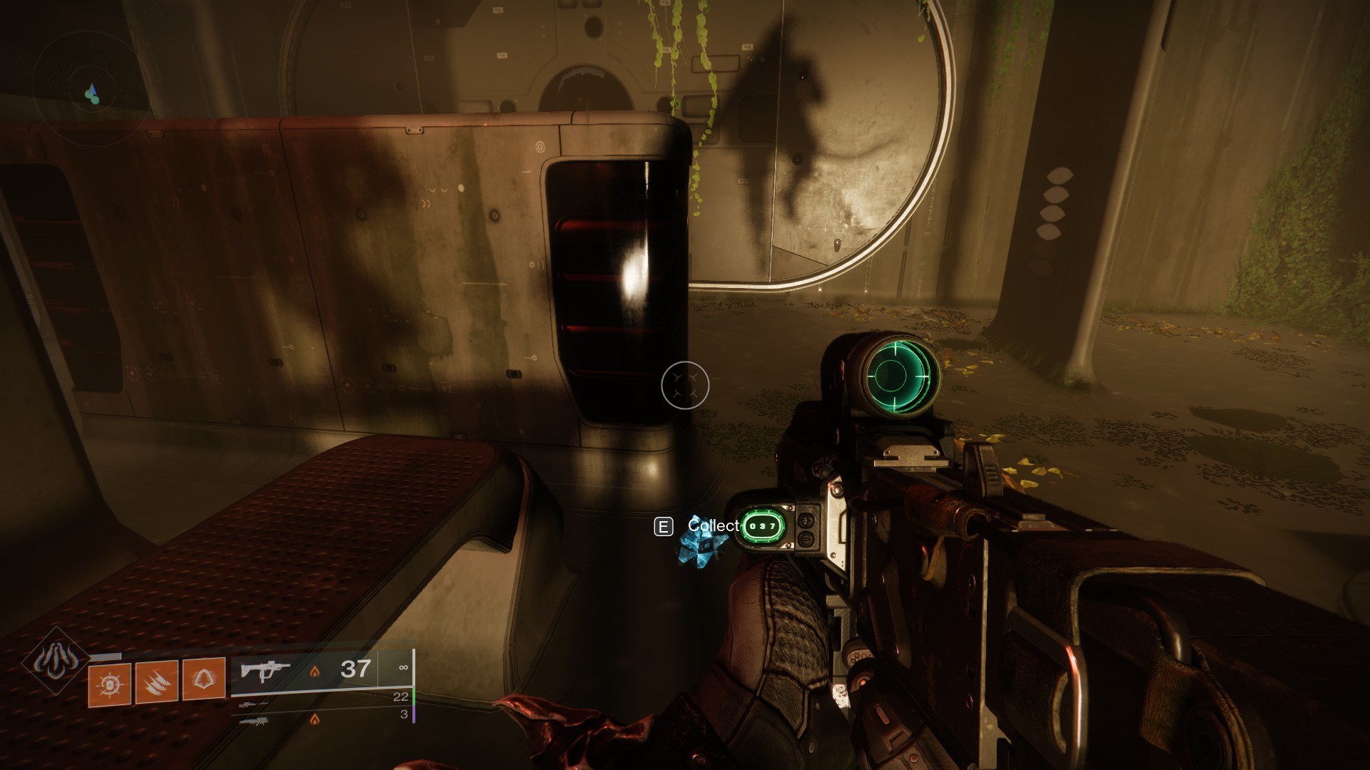 Wade through the water until you can spot the wreckage of the Hive ship from afar. Keep going toward the remains of the ship, and you’ll come out on a hallway that faces the wreckage directly, with a bubble in front of you. Look for a coral on the right to spot an alcove, then find another collectible inside.
