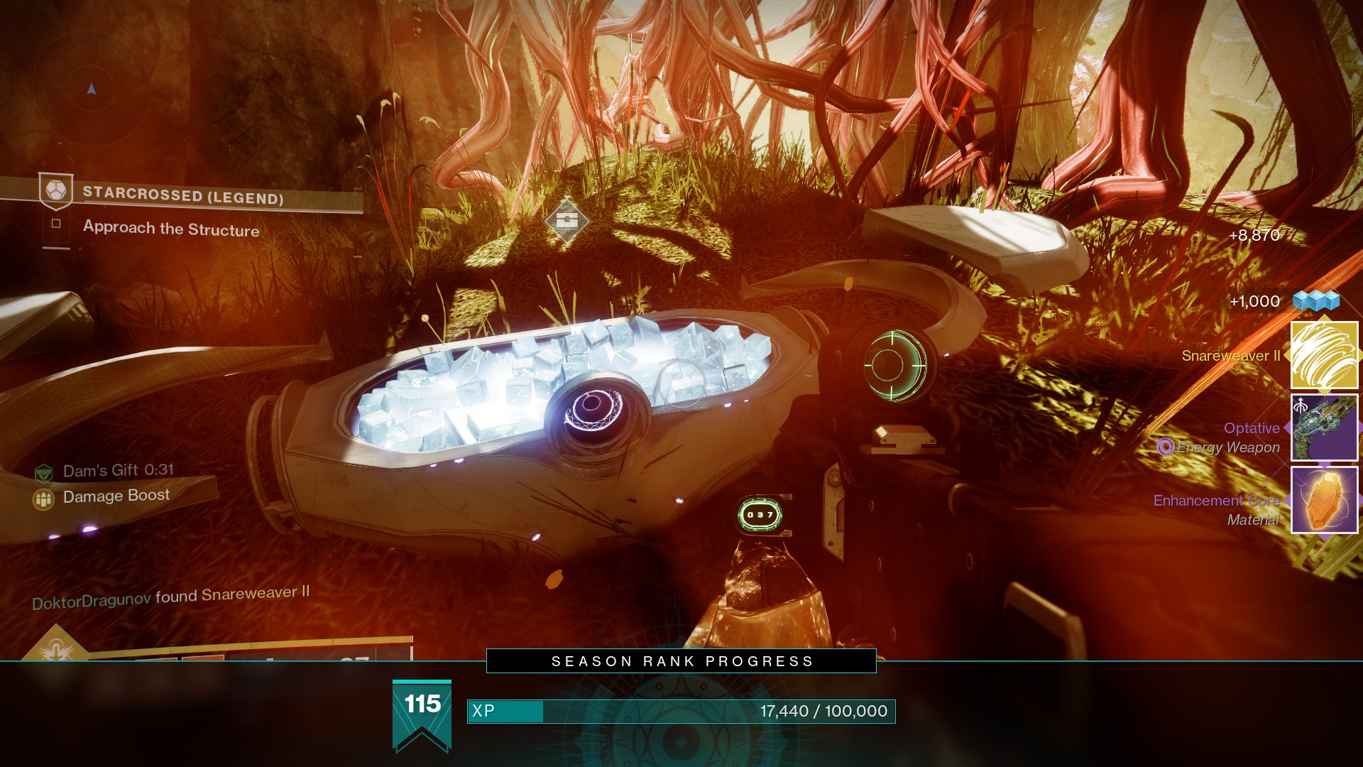 Opening up the first secret chest in Starcrossed gave us two enhancement cores and a reissued Season of the Undying weapon. Like any other gear drops, these chests can give you weapons with Deepsight Resonance.